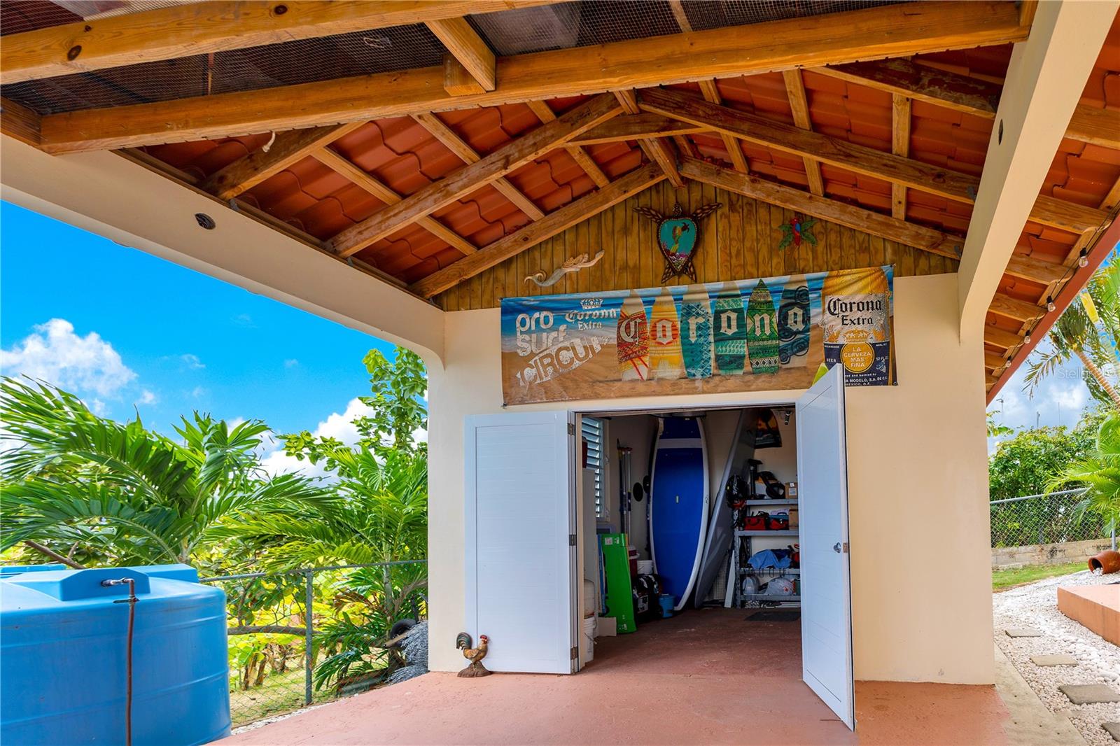 Set on a peaceful side road just off Road 413, the location offers tranquility while remaining close to key surf and beach destinations, including Sandy Beach and Domes Beach just a short drive away. Additional features include a fully fenced yard, carport for multiple vehicles, dedicated storage for surfboards or outdoor gear, and backup water and power systems for added reliability.