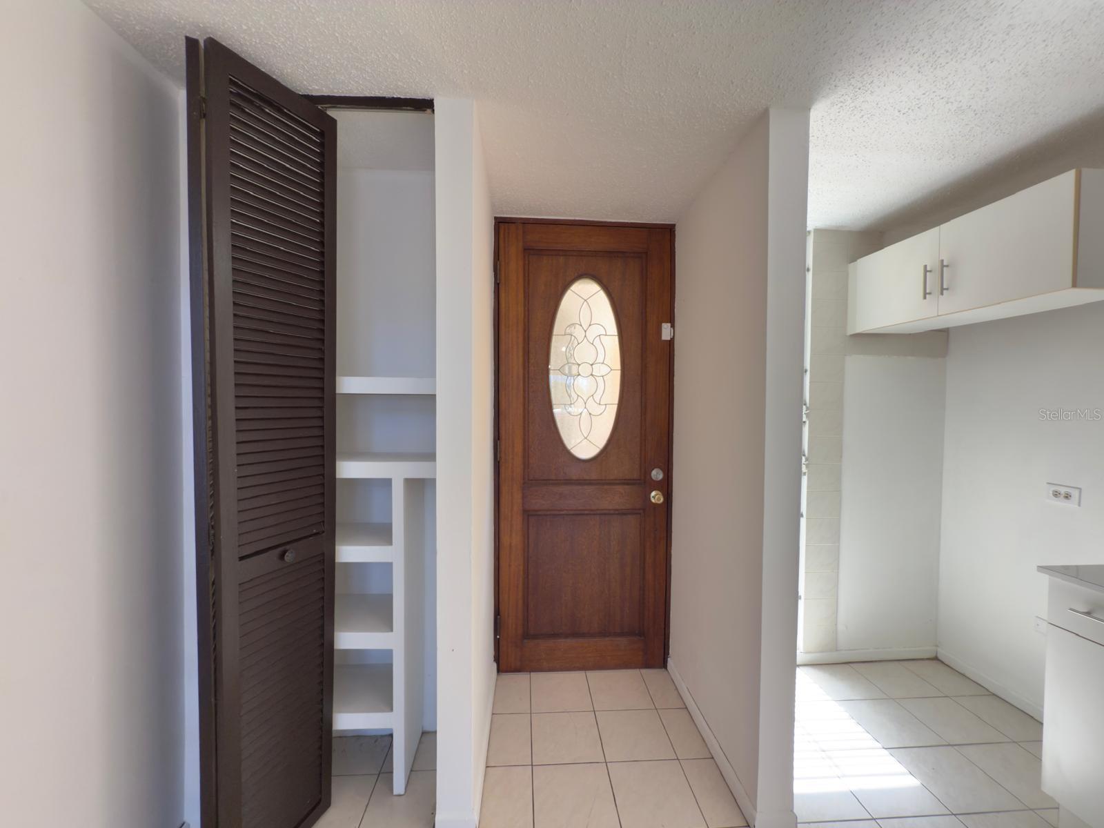 Up the stairs, the second level includes two bedrooms, one full bathroom in hallway, a laundry closet with washer connection, and a walk-in closet in the primary bedroom. The second bedroom has built-in closet space with wooden foldable doors. The bedrooms have one mini-split unit A/C and one window A/C. The property includes one assigned covered parking space in garage under the building and offers easy access to main roads, shops, restaurants, and services. The building features an elevator with access from garage and from main lobby.