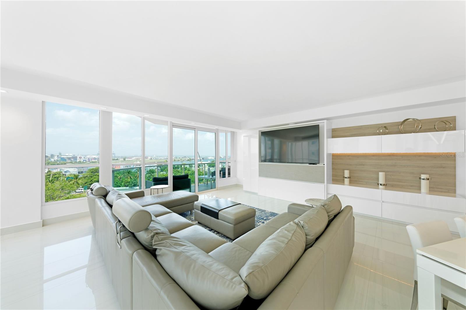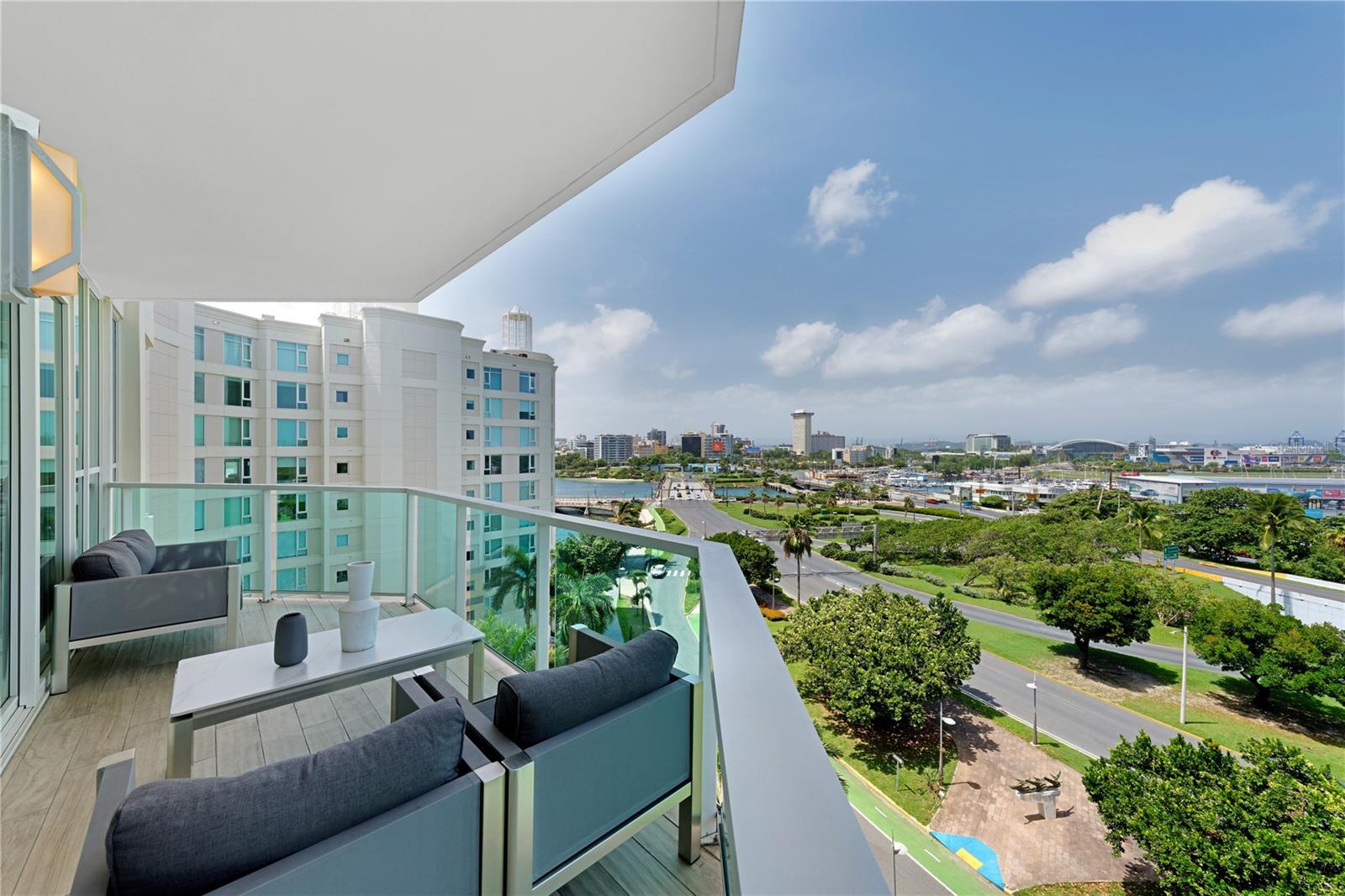 This stylish 8th floor corner unit at Bahia Plaza offers panoramic views of the San Juan Bay and the District's skyline. The impeccably designed 2 bedroom, 2.5 bath residence with 2,071 interior and exterior square feet is located in the coveted Paseo Caribe complex situated between Condado Beach and Old San Juan. Residents enjoy concierge services, pool, gym, lounge and a full power generator.