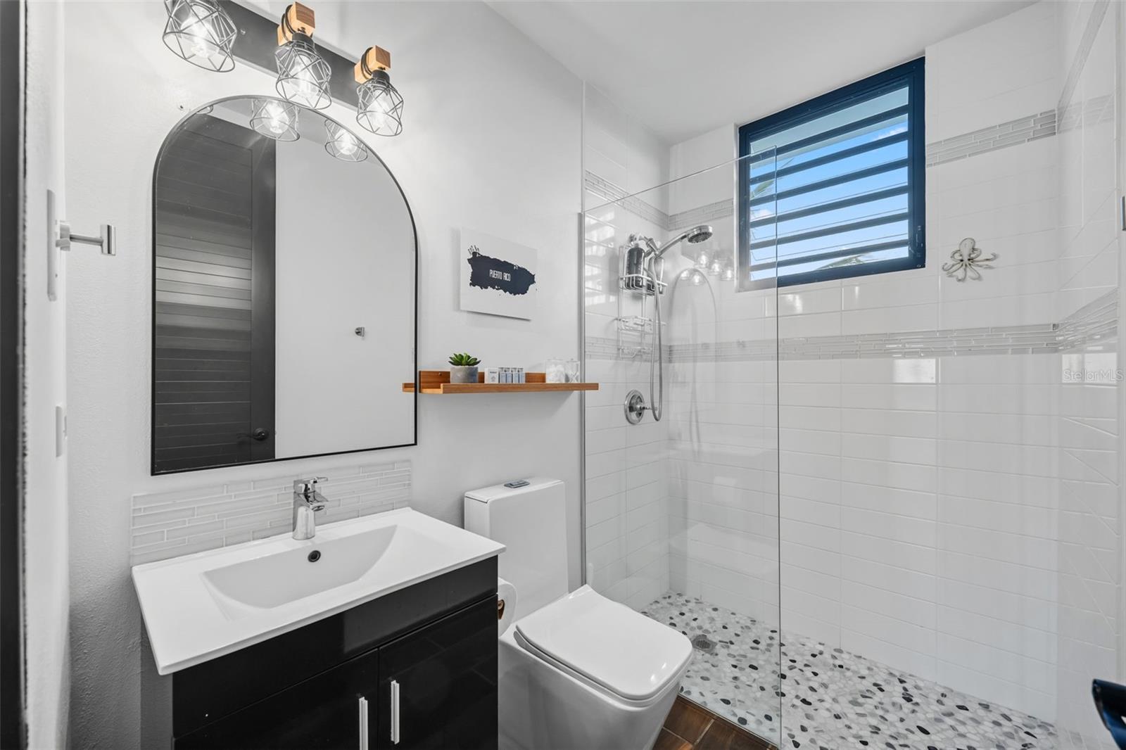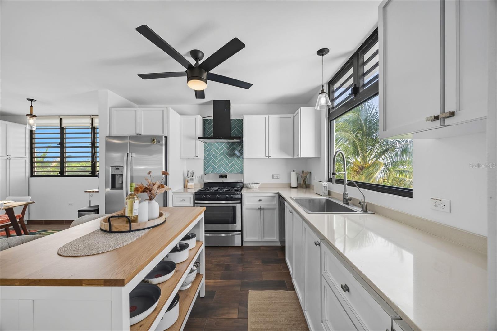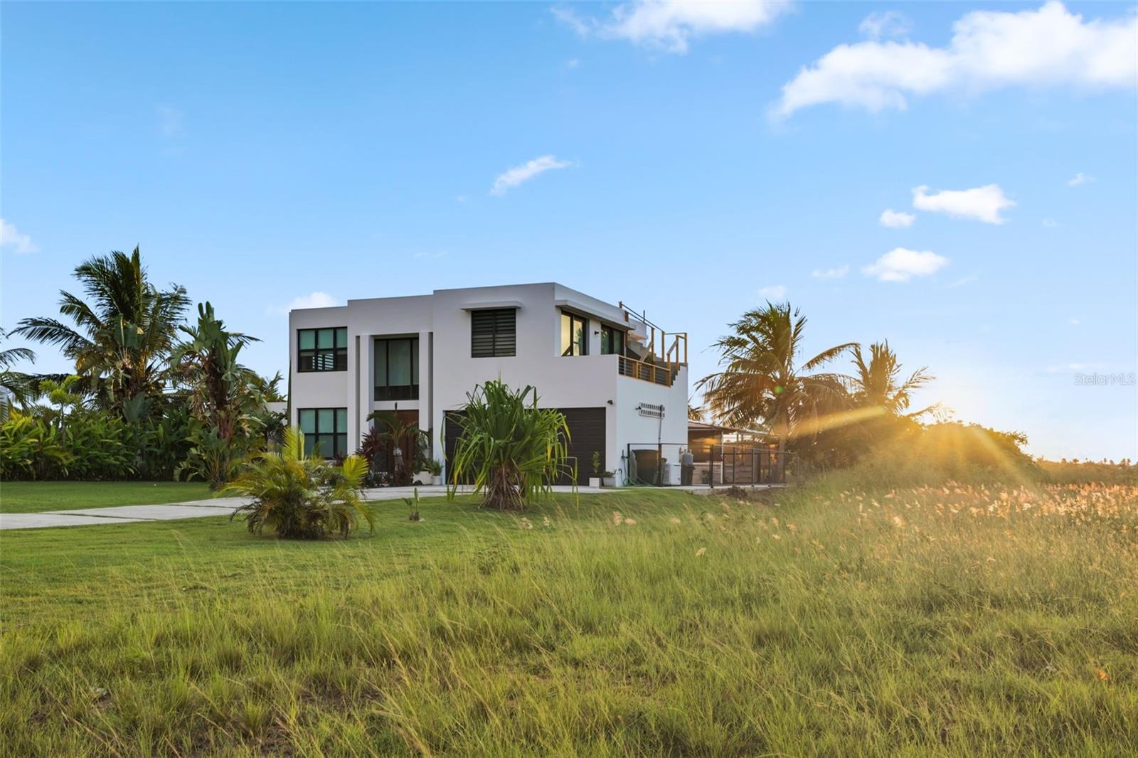 Located in a gated community in Isabela, this beautiful home features a reverse living layout designed to prioritize privacy and coastal views. The upper level integrates the primary living, dining, and kitchen areas, opening through new floor-to-ceiling glass sliders to a balcony with ocean views. A dedicated rooftop deck provides a panoramic vantage point of the coastline. The exterior is anchored by a built-in concrete pool and fully fenced grounds with mature landscaping, including fruit-producing coconut trees. For reliability and comfort, the home is equipped with a 13,000 KW gas generator, a solar water heater, two cisterns, and brand-new inverter AC units. Enhanced by new doors, windows, and electric roll-down hurricane shutters, this property offers a modern retreat in one of the island's most sought-after beach corridors.