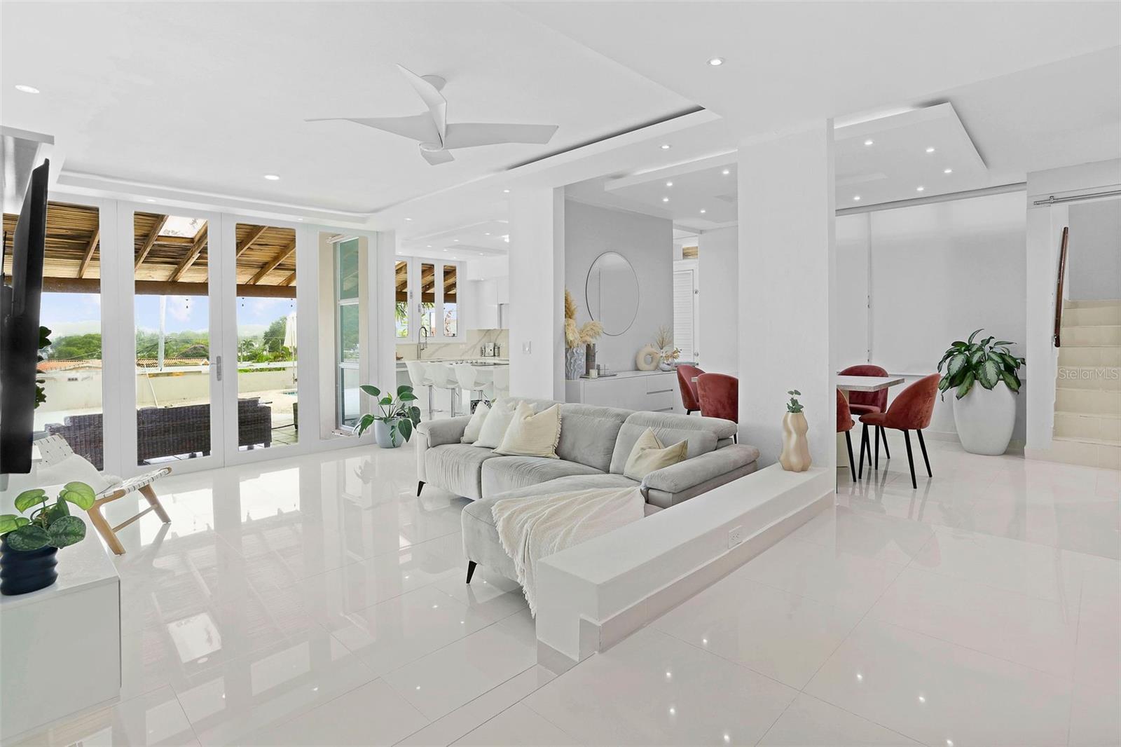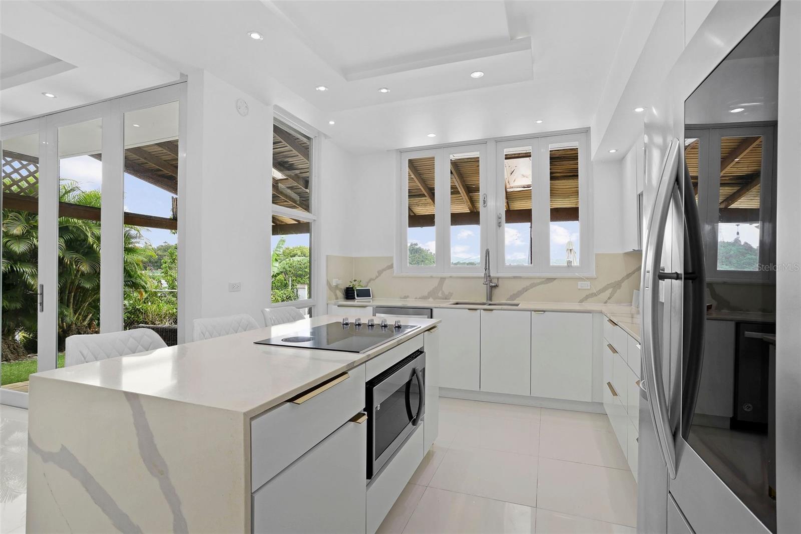 Welcome to this beautifully renovated 4-bedroom residence with a dedicated office, located in the secure, family-friendly community of Mansiones de Alejandrino. Designed for both comfort and functionality, this home is filled with natural light and features a seamless open-concept layout that connects the living, dining, and kitchen areas—perfect for everyday living and entertaining.