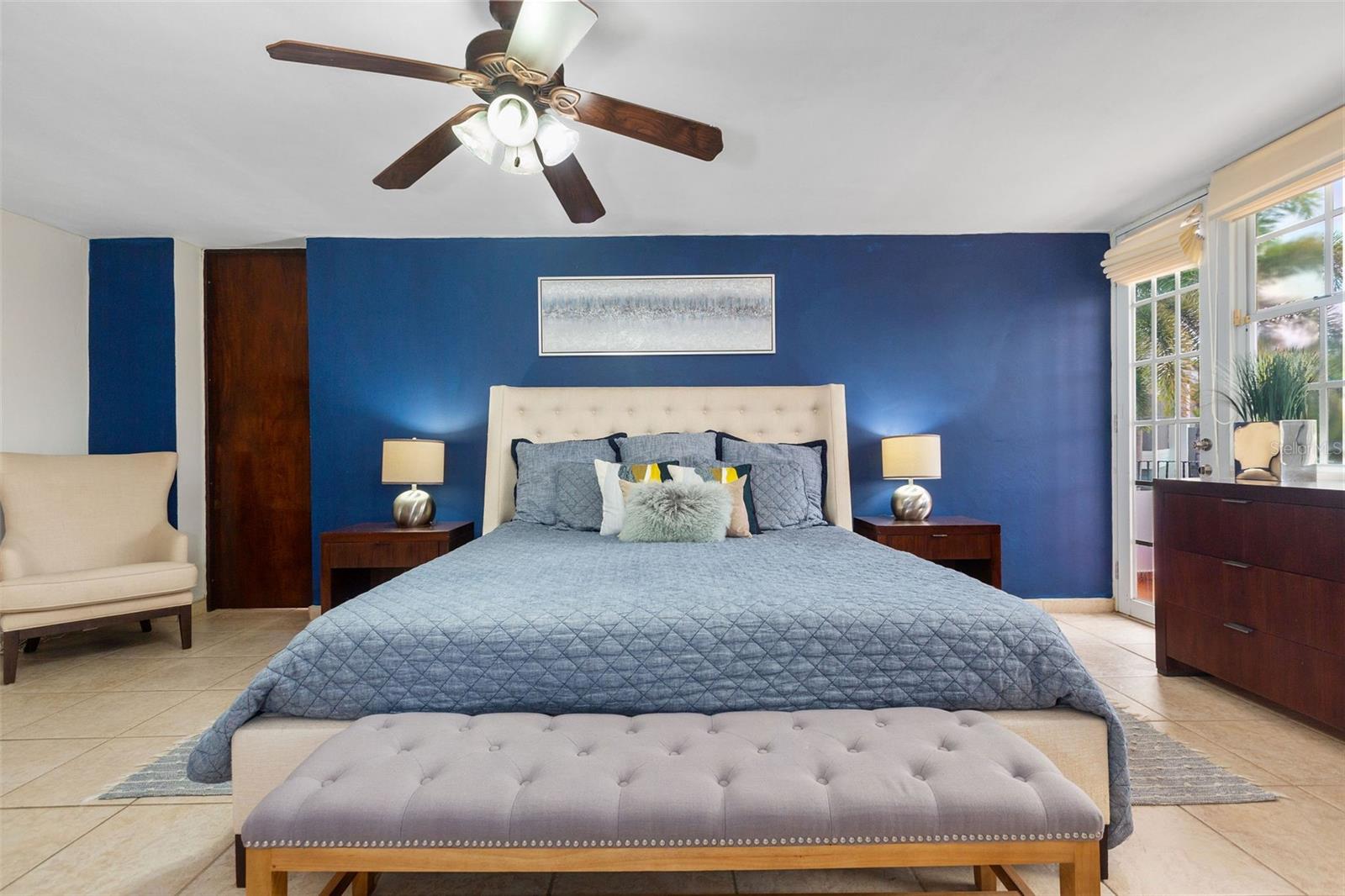 Set on an expansive lot, the home enjoys serene views of lush greenery and the river that borders the community’s perimeter—creating a peaceful, retreat-like atmosphere right in your backyard.