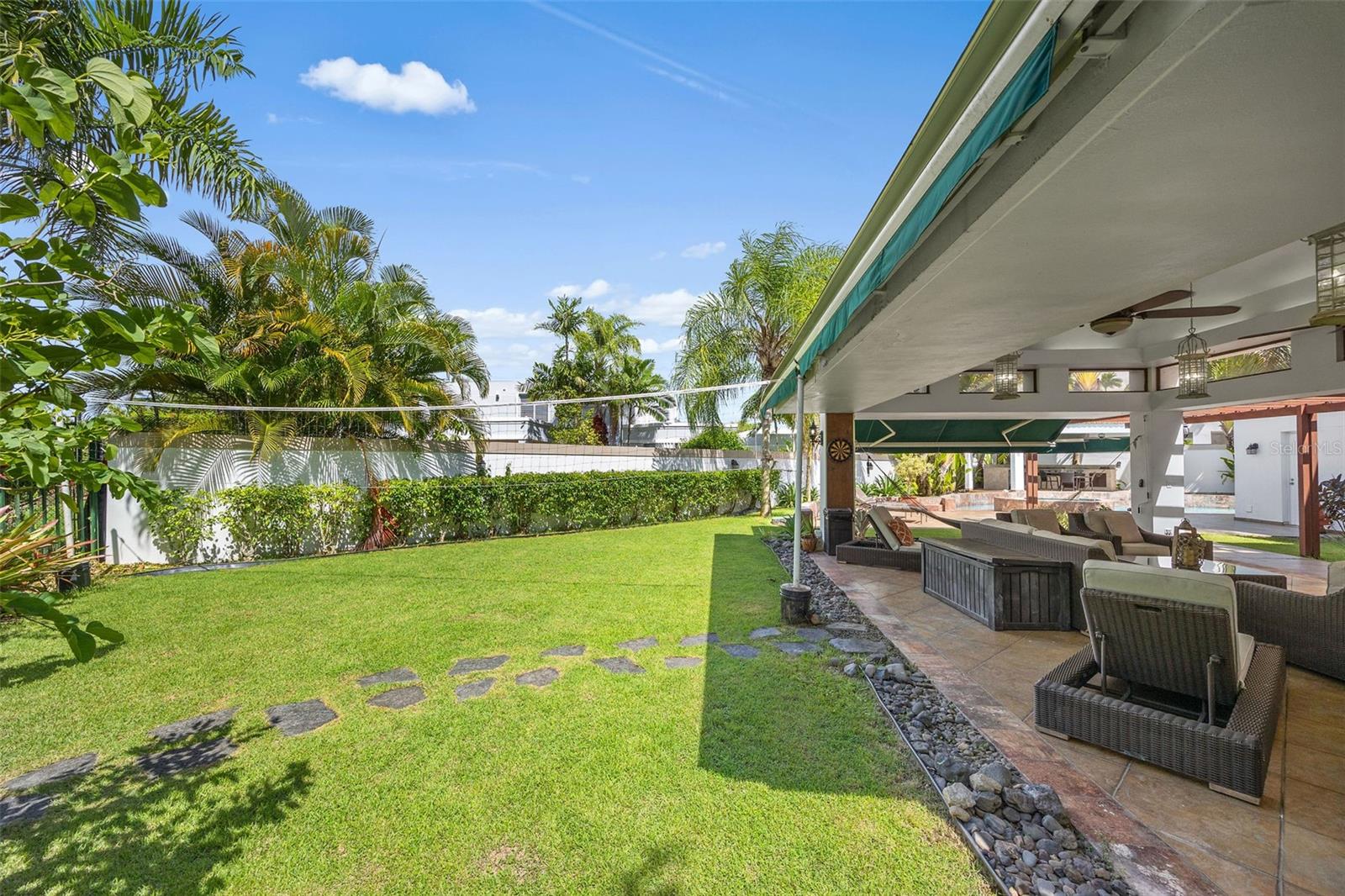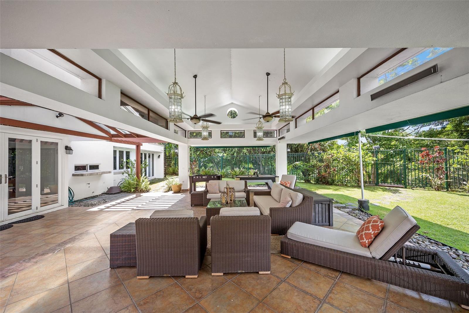 Outdoor living is where this home truly shines. A large terrace opens to a beautifully designed gazebo with a fully equipped exterior kitchen—perfect for hosting gatherings. The generous backyard still offers ample green space, easily accommodating a volleyball or recreational play area.