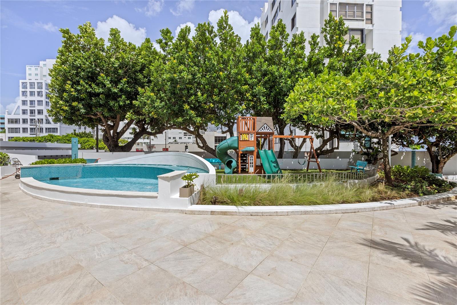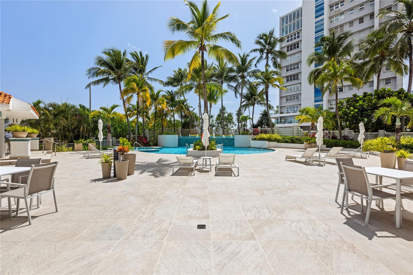 Oceanfront Living at Candina Reef | Truly flawless, this second-floor residence has been renovated to meet the highest standards at Candina Reef, Condado’s most coveted full-service condominium. Positioned on a quiet corner at the end of Candina Street, this building features a grand lobby with lavish woodwork, stained glass and elegant marble details. The expansive grounds provide resort-style amenities with direct beach access, a fully equipped fitness center, sauna and steam room. The tree-lined pool area is complete with lush vegetation, lively waterfalls, multiple lounging areas, a children’s pool and playground. Entertaining is a breeze at the gazebo area, which is outfitted with a two-burner gas stove, full gas grill, ice maker, and mini fridge/freezer. Residents of Candina Reef benefit from a full power generator, 24/7 security personnel, concierge, mail room, in-house administrator, two brand-new elevators and a designated service elevator.