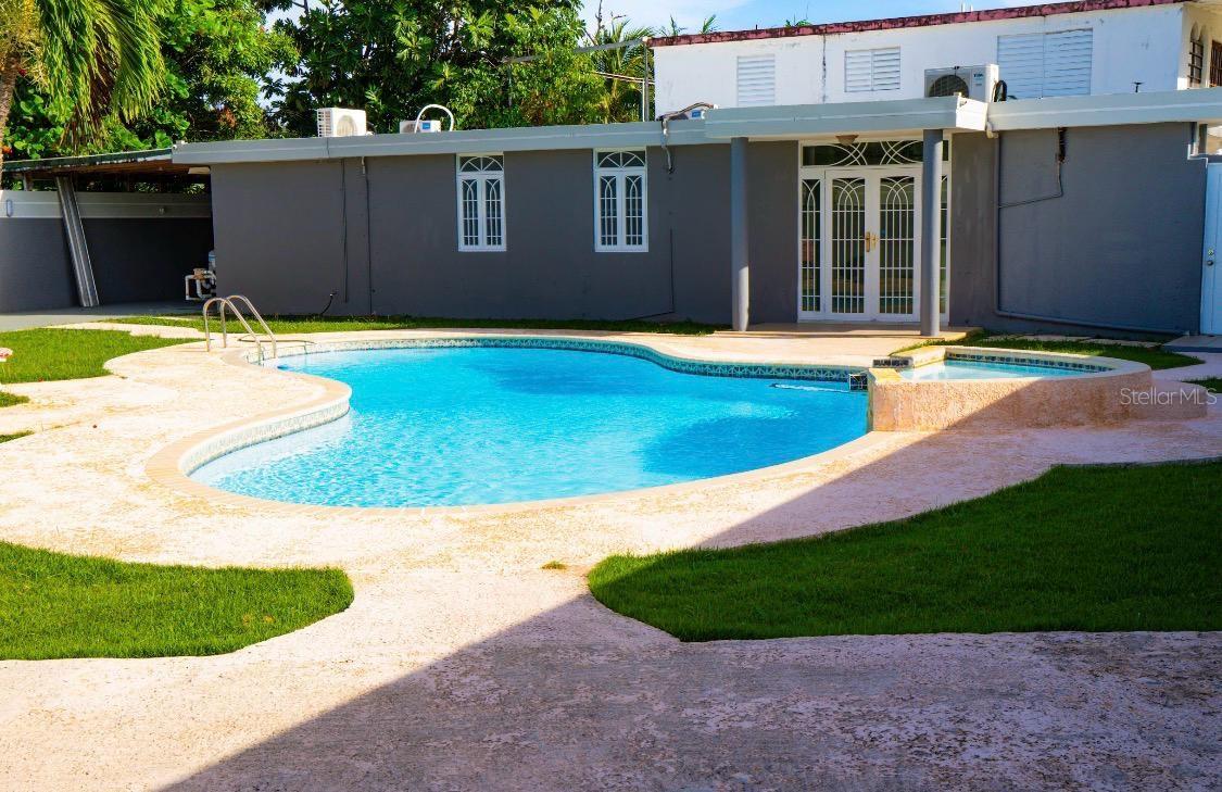 In Fajardo Gardens Dev. Beautiful single-family property at the end of cul-de-sac. It offers comfort, outdoor spaces and excellent potential. It has approximately 1,093 sf of construction on a lot of 472.65 sm. It has a large outdoor backyard with a swimming pool with jacuzzi and a wooden terrace, all enclosed with a cement fence. This home also offers an open balcony, kitchen with island, storage room, laundry room and a principal room with closet room. Extended garage with space for 3 vehicles. Located less than 1 mile from PR-194, PR-3 and Plaza Fajardo Mall; and less than 5 miles from Balneario Seven Seas and Las Cabezas de San Juan. This property offers an excellent opportunity as a primary, vacation or investment residence. FEMA Zone: X (Minimal or Low Probability). Zoning: R-I (Residential Intermediate) Payment Property taxes (CRIM): $1,854.54 annually approx. (without exemption). This sale is not subject to appraisal.