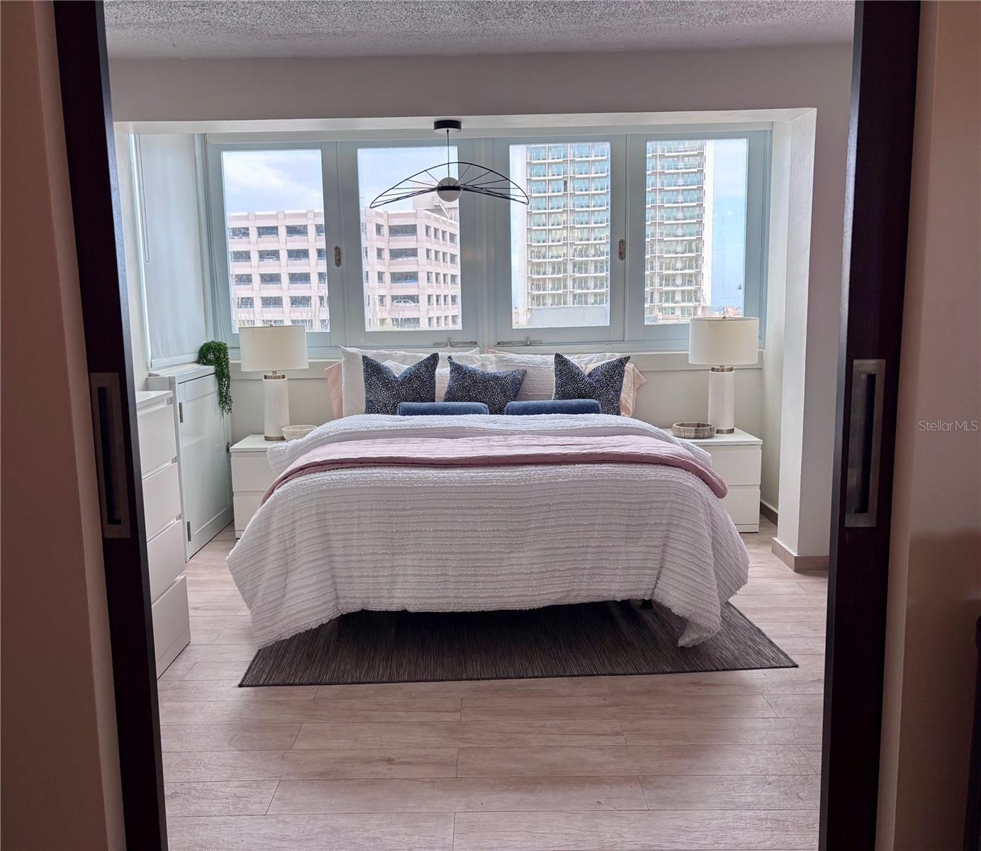 AVAILABLE FOR LEASES OF 3 MONTHS OR LONGER. Fully remodeled and furnished studio converted to one (1) bedroom, located on the 6th floor of Condominium Castillo 60, Caribe Street, Condado. Features one full bathroom, walk-in closet, living area, and open kitchen with breakfast/dining space. Includes A/C, microwave, refrigerator, washer and dryer. Partial ocean views, excellent natural light and ventilation. Building offers water cistern, backup generator for common areas and elevator, lobby, and one (1) assigned parking space for compact vehicle. Prime Condado location, a short walk to the beach, Marriott Hotel, restaurants, supermarkets, and just two minutes walking distance to Stella Maris Park. Ideal for urban, walkable lifestyle. HOA included.