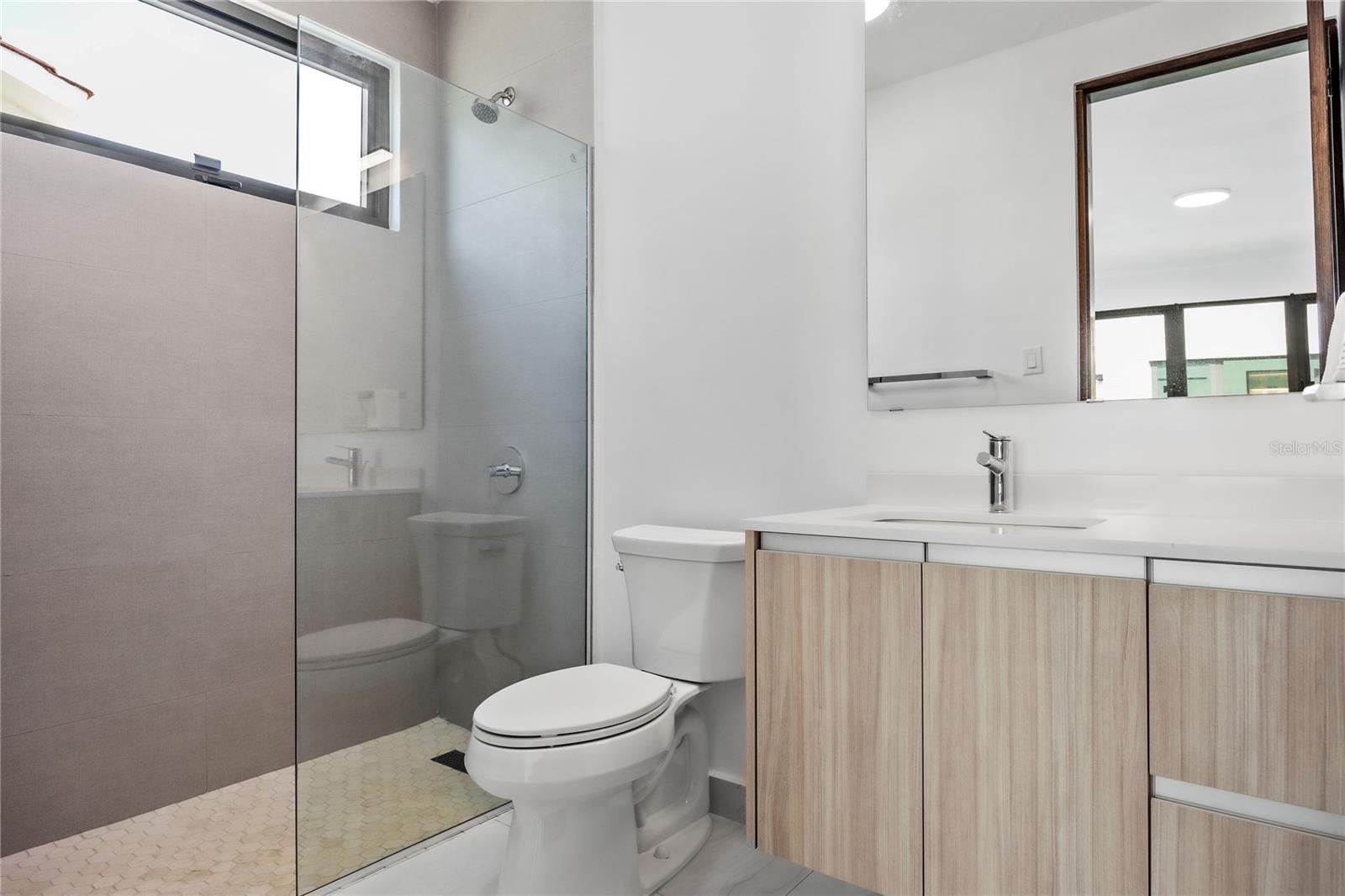 The heart of this home is the Calacatta marble kitchen, adorned with top-of-the-line finishes and appliances - fully equipped for culinary excellence. Quartz countertops grace the custom-built, en-suite bathrooms. A double vanity, oversized shower, and free-standing tub complete the windowed primary bathroom suite. The primary bedroom is a sanctuary of its own, featuring direct access to the backyard and a brand new extra-large walk-in closet designed for the most discerning tastes.
