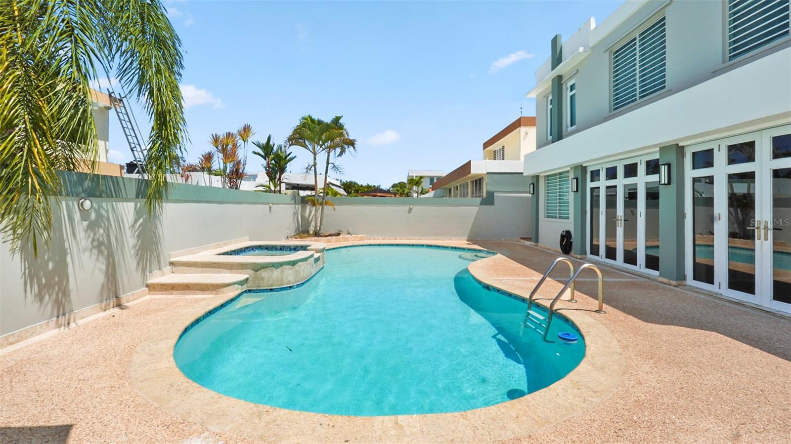 The property features a private pool with jacuzzi area, 20 kW diesel generator, solar water heater, six new air conditioning units, double garage and a dedicated office space. It is being sold fully furnished.