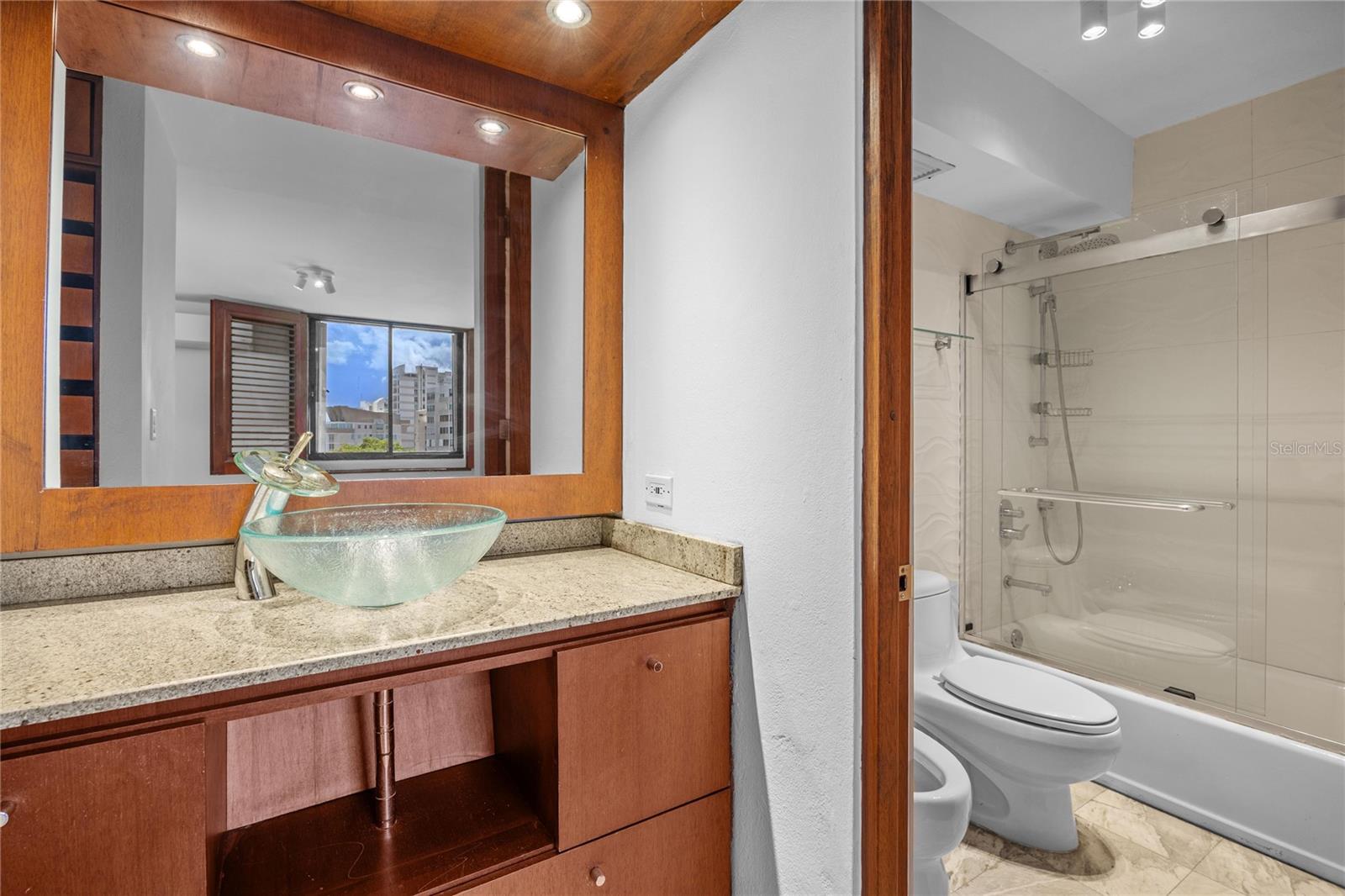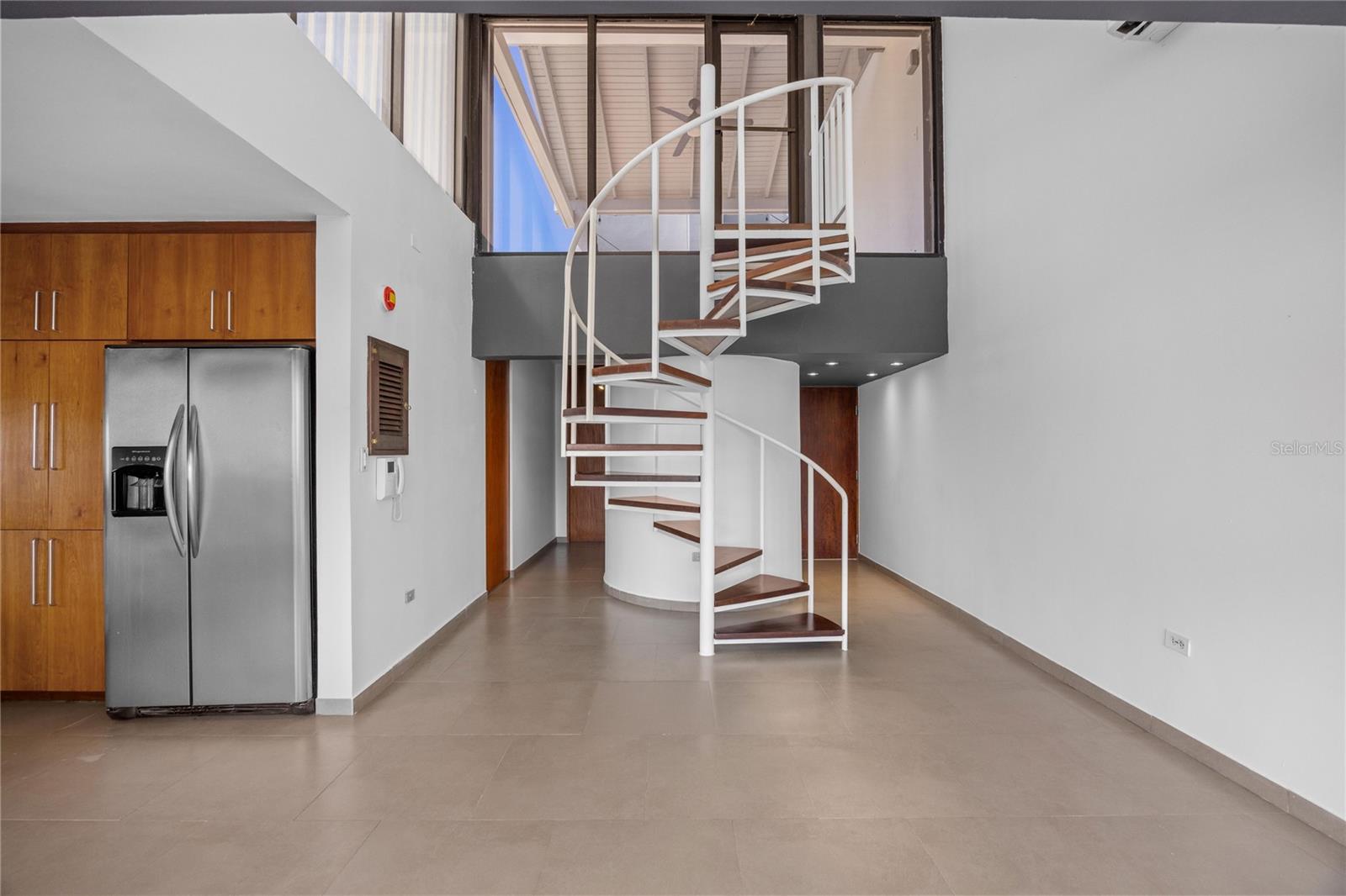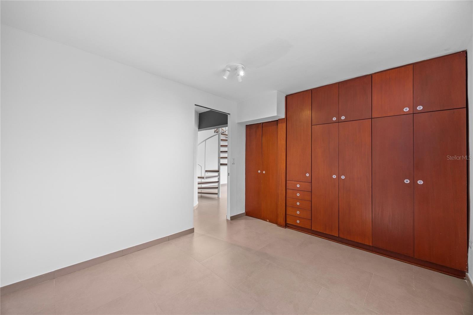 The second level features an expansive terrace—an exceptional rarity in Condado—offering both covered and uncovered areas. The covered portion can be easily enclosed to create an additional bedroom, office, or expanded living space. The open-air terrace provides a private retreat in the heart of the city, ideal for entertaining or creating a personal wellness space.