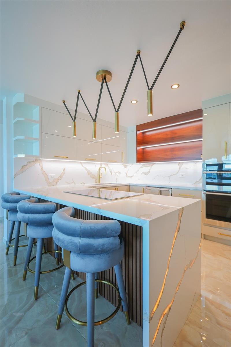 The kitchen stands as a true centerpiece, thoughtfully designed with sleek custom cabinetry and premium appliances, blending functionality with refined modern aesthetics. The residence is offered fully furnished in a curated modern minimalist luxury style.