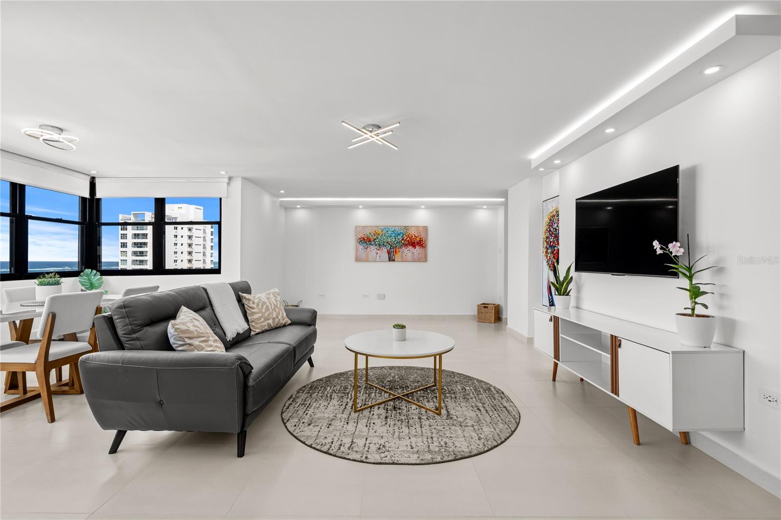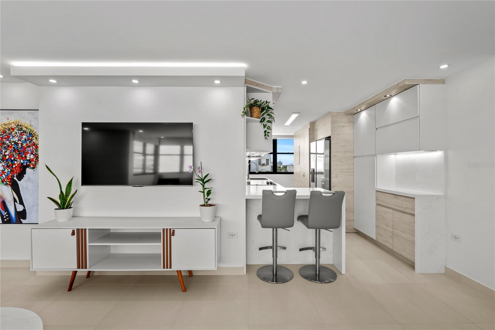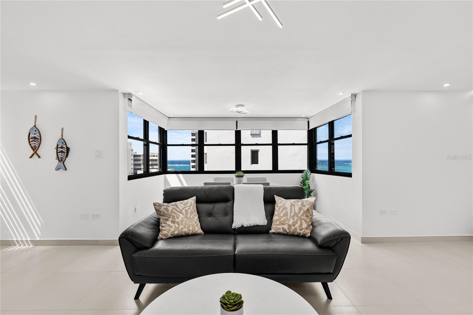 Set high on the 11th floor of an exclusive boutique building in Condado, this northeast corner unit with turquoise ocean views, is nothing short of a masterpiece in modern renovation. From the moment you cross the threshold, you're greeted with an ethereal sense of calm--clean lines, pristine surfaces. This is not just a renovation--it's a full reimagination. Every surface, every finish, every detail has been considered and elevated.
