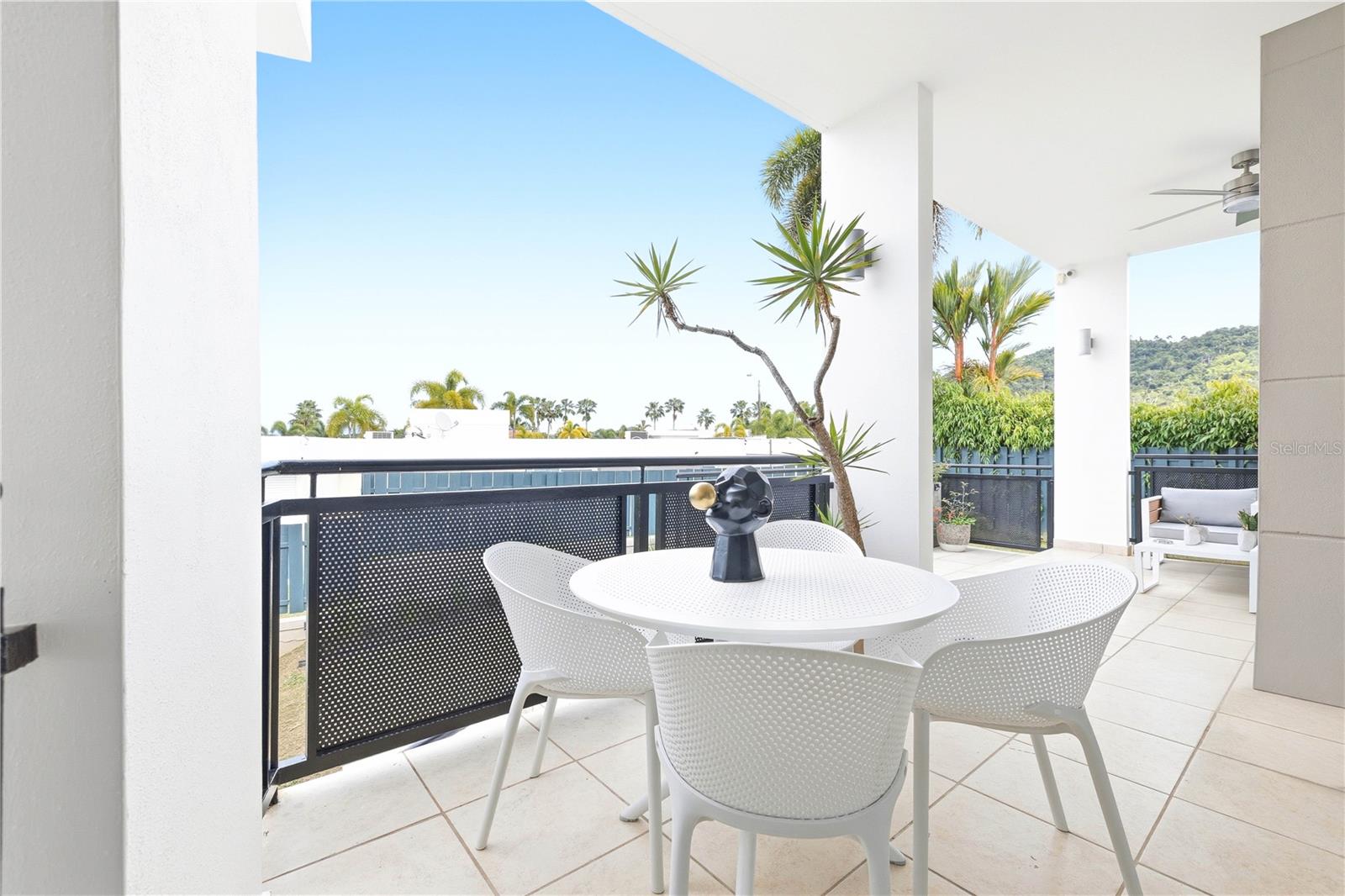 Mansiones de Ciudad Jardín, Model 3 Elegant multi-level residence offering approximately 2,100 sq. ft., featuring 4 bedrooms, 2 full bathrooms, and 2 half bathrooms. The property showcases a remodeled Euro Design kitchen, along with a dedicated office or coffee station area. Expansive terraces and the overall layout create a seamless connection between indoor and outdoor spaces, enhancing natural light and airflow. There is also space to add a pool. The home includes a new front door and windows, as well as 25 solar panels with a Tesla Powerwall battery system. Located in a gated community with 24/7 controlled access, in a prime area close to schools, supermarkets, and shopping centers. Surrounded by the mountains of Caguas, the community offers excellent amenities including a baseball field, soccer field, activity room, 1 gym, 3 tennis courts, 2 basketball courts, parks, and 2 community pools, making it ideal for families seeking a primary residence. HOA: $160/month.