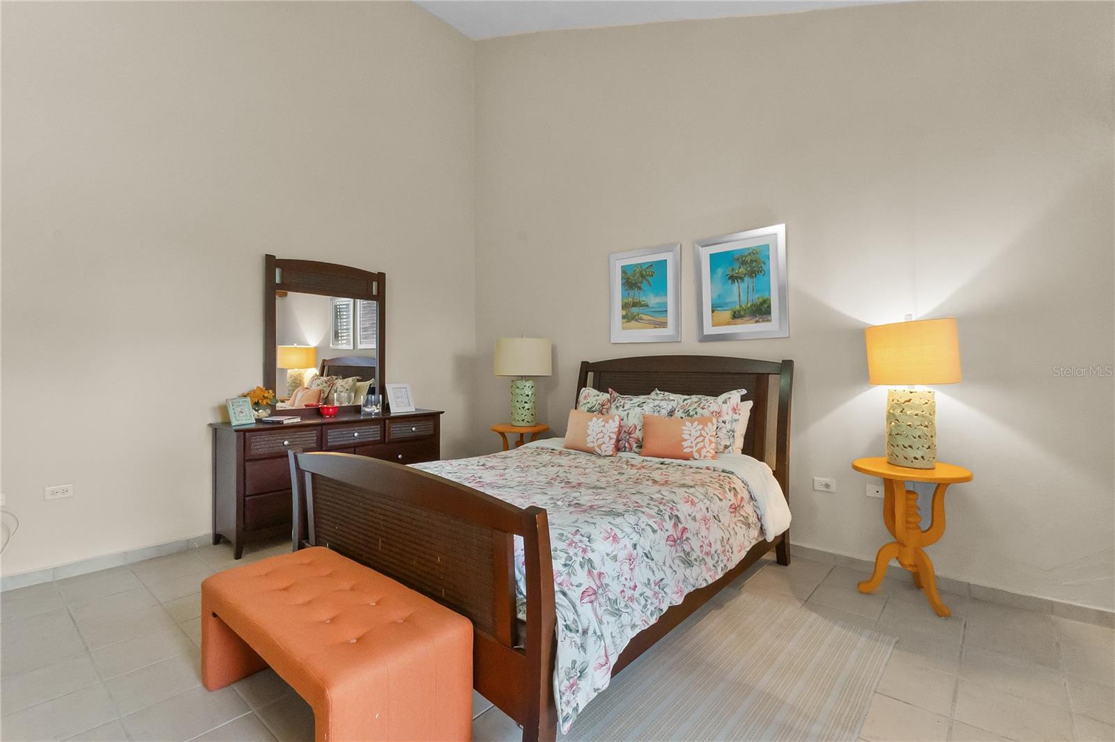 The primary suite is located on the second floor, offering added privacy and partial ocean views, creating a serene and inviting retreat.