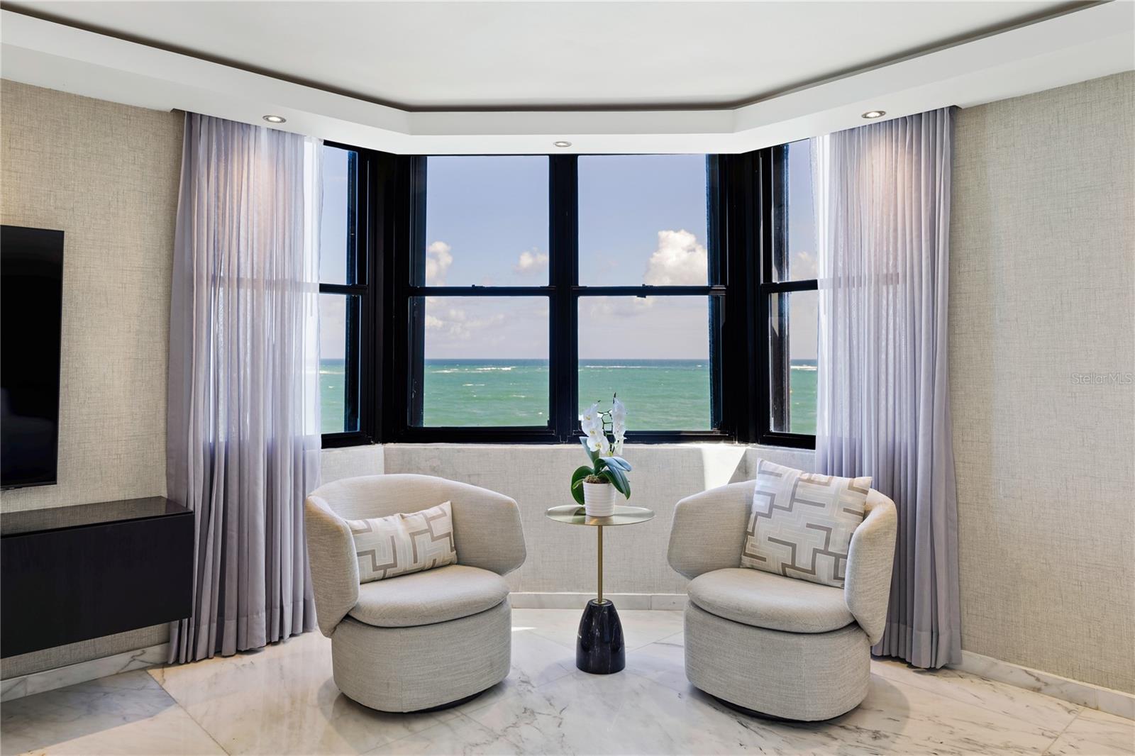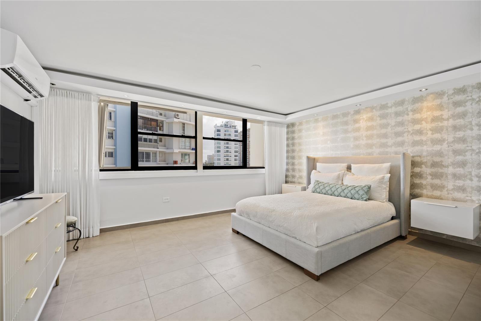 Enjoy the pinnacle of island living in the city within this 6th floor apartment in Condado Princess. Offering enviable panoramic ocean sights from the kitchen, living room and partial views from two of the three bedrooms. Modern furnishings throughout the inviting residence showcase a lively color palette that provides a vibrant ambience for hosting. The galley kitchen highlights the awe-inspiring Atlantic Ocean. Appliances include a stove/oven, microwave, two-door refrigerator and wine cooler. The primary suite features a sizable layout and spacious closet spaces. Two parking spaces are also provided for added comfort and convenience. The 16-story condominium offers residents 24-hour security, full-power generator and a desirable beachfront location within close proximity to parks, boutique shops, restaurants, hotels, hospitals and schools such as St. John's and Robinson. Condado Beach is a highly-esteemed metropolitan community within the island's thriving capital. Near Isla Verde, Old San Juan and the Miramar Arts District.