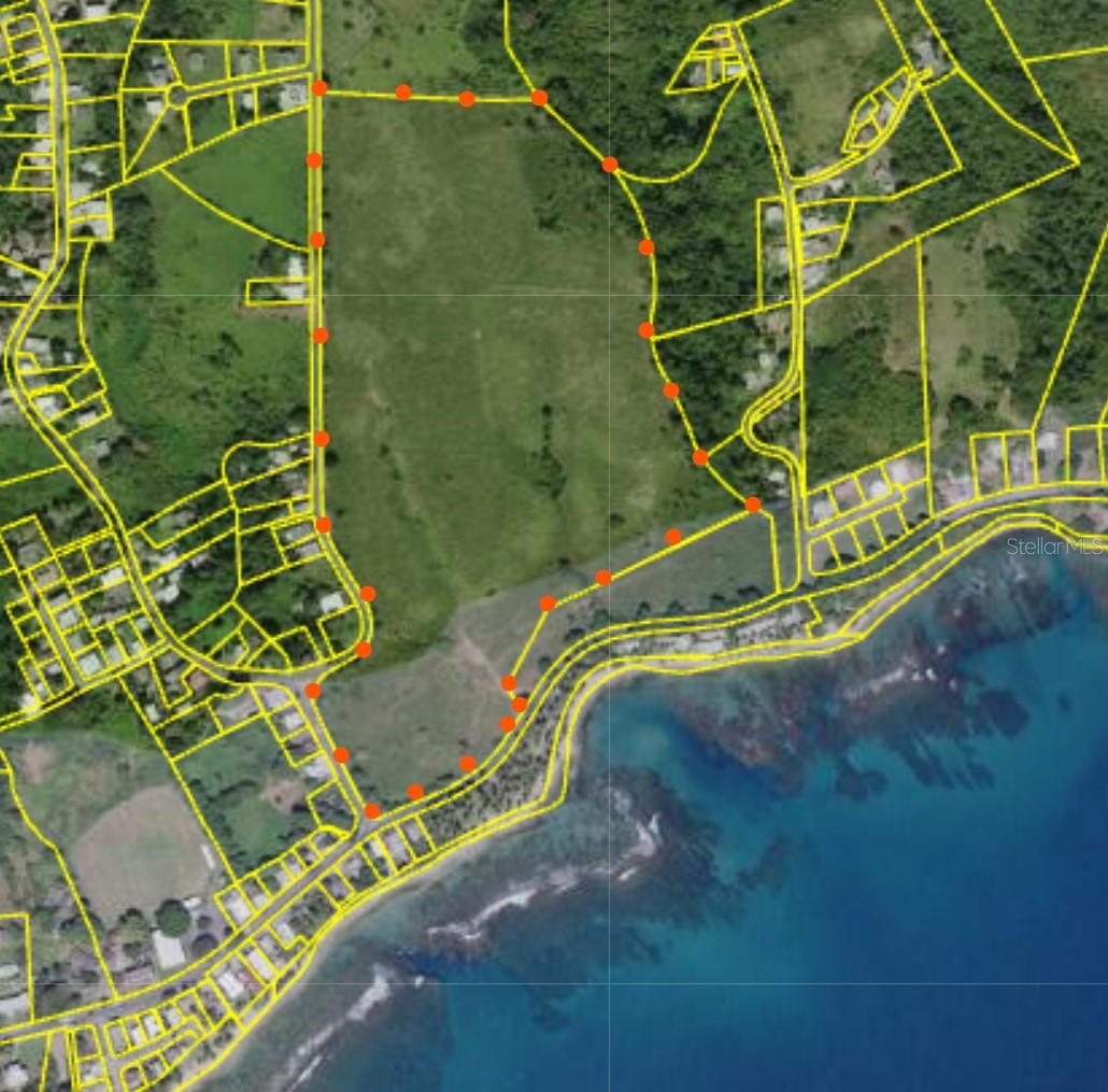 The property, currently utilized as pasture for cattle, presents boundless possibilities for development. Most of the land is adorned with high grass, gently sloping down toward the sea, ensuring that every corner of this expansive parcel boasts breathtaking ocean panoramas. Nature's artistry unfolds as one gazes northward upon the majestic and lush peaks, while to the south, the glistening turquoise hues of the Caribbean Sea captivate the senses.