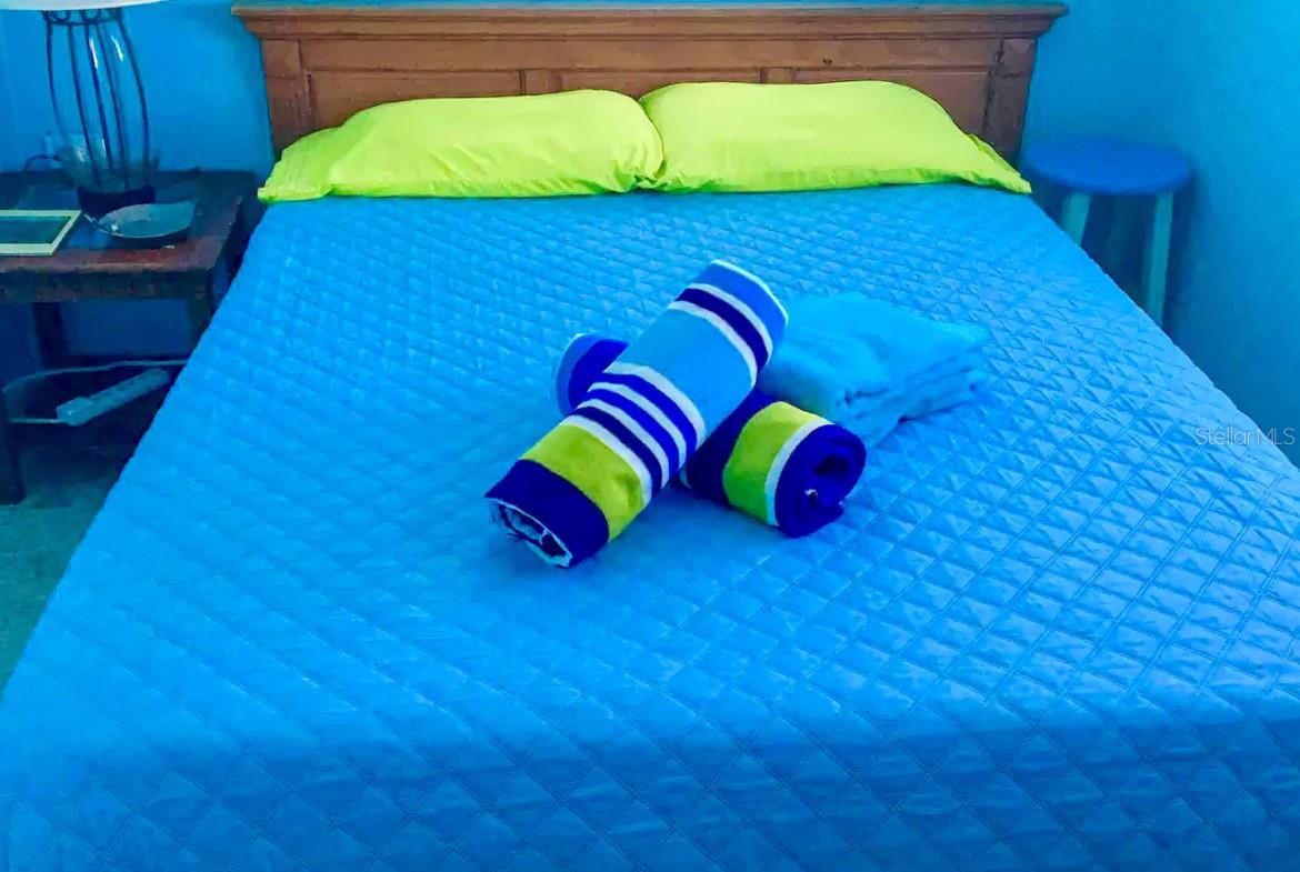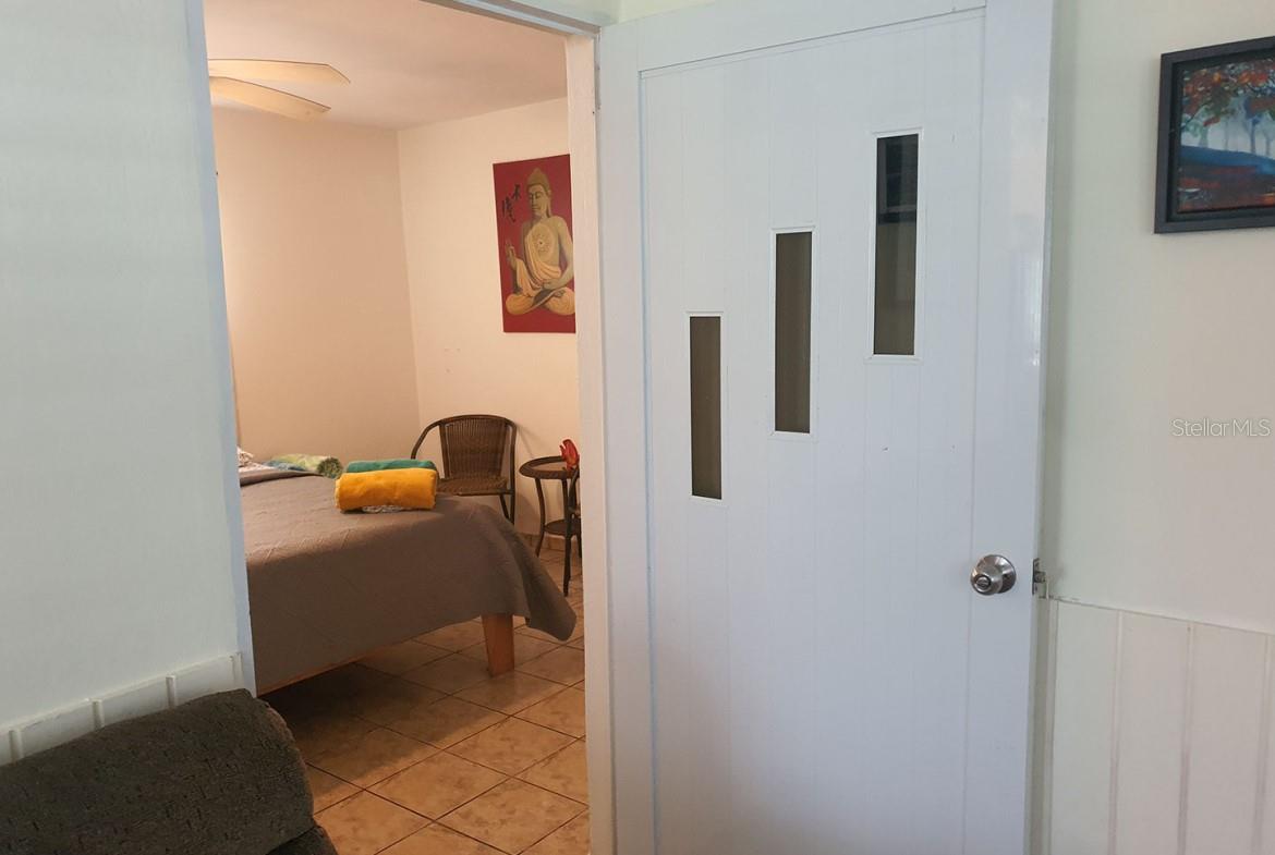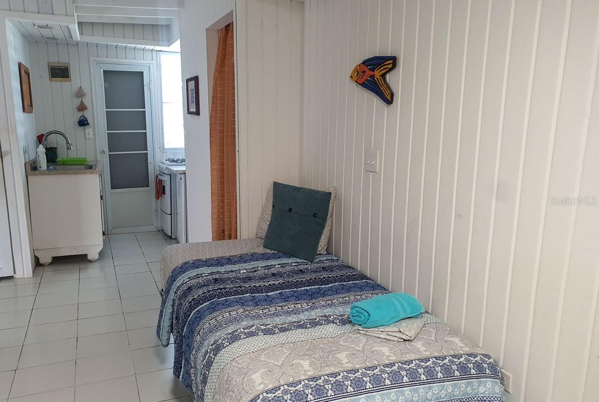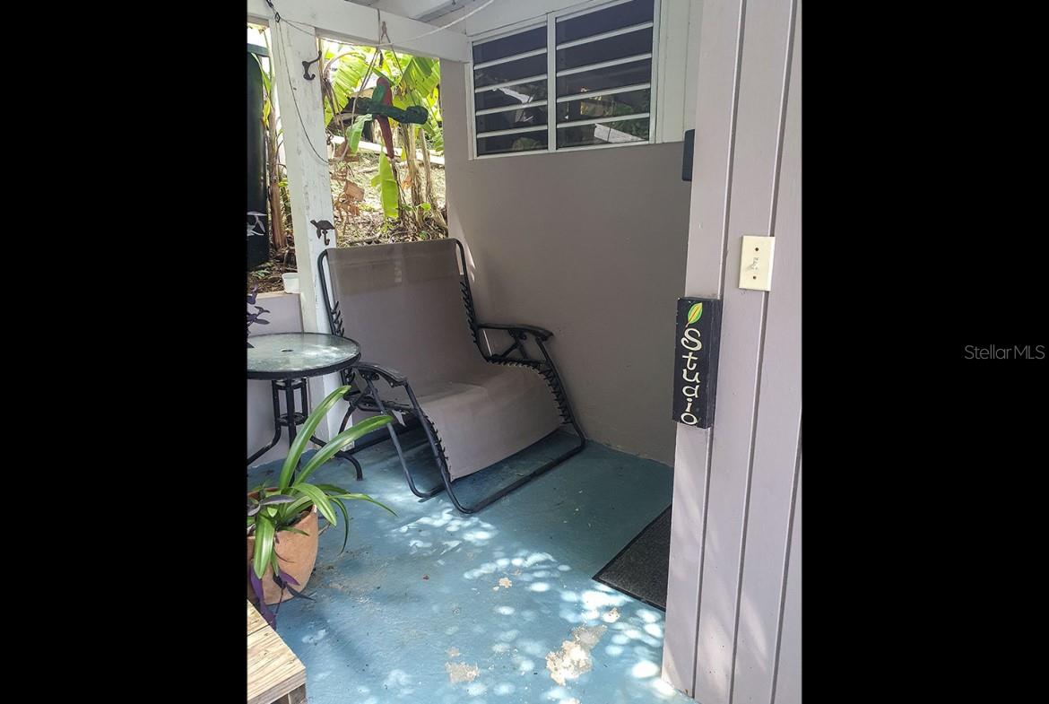 Walking down the steps to the first apartment, you enter a Studio apartment with a king sized bed,  a kitchenette, a full bath, and a back entrance with private outdoor sitting area.