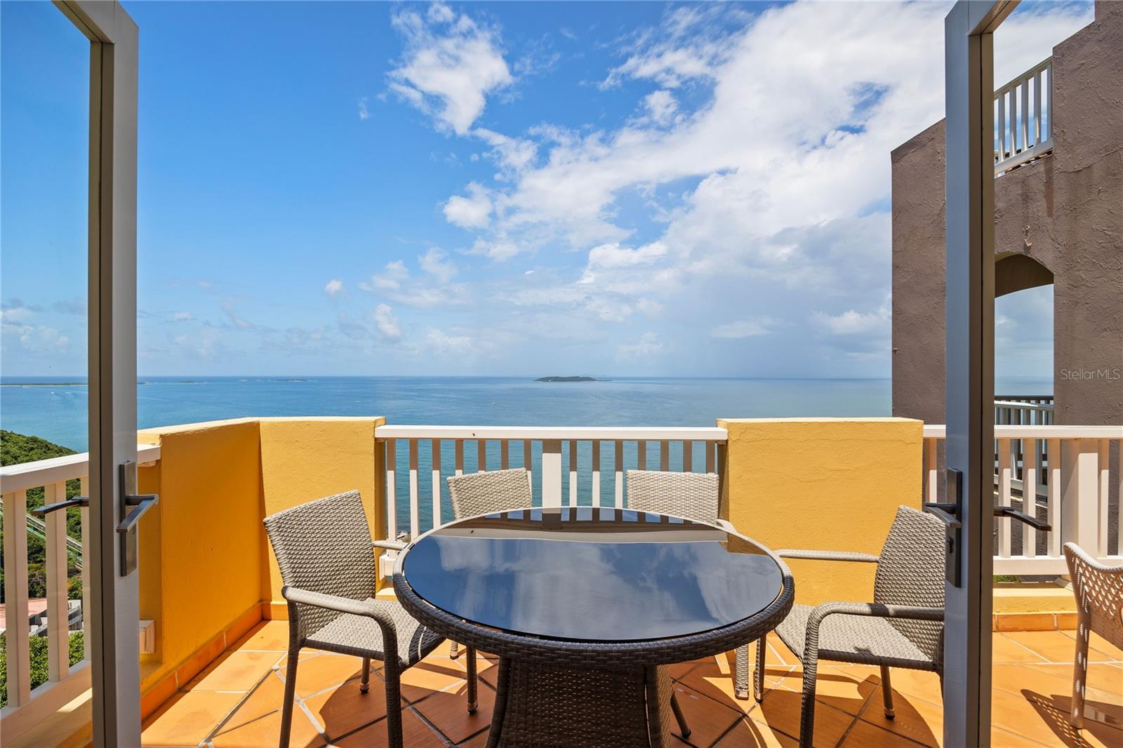 This luxurious villa features an exclusive terrace offering breathtaking ocean views, ideal for enjoying the magnificent sunrise and sunset of Puerto Rico's beautiful East Coast. This villa is positioned right by the main swimming pool. This property boasts a prime location. Completely remodeled, the villa spans 1,738 square feet and includes one bedroom, one full bathroom, a balcony with ocean views, and a terrace.