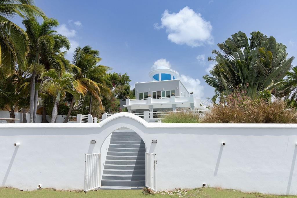 The art deco style villa elegantly mixes Mediterranean and Caribbean architecture. It’s distinct blue dome has become iconic of the North Shore skyline. The most spectacular space is the upper level apartment which has a unique European vibe with its stone mosaic floors, cathedral-esque arches, and grecian style louvered cabinets. The back drop from the main living space and the large outdoor lounge are the magnificent pool and turquoise ocean. Some of the spaces best features are the exterior bathroom and the amazing rooftop duomo with views of the mainland, Palomino and Culebra. Its doric columns frame the spectacular sunrises and sunsets during the morning and evening hours and the ferries can be seen as they come and go during the days.