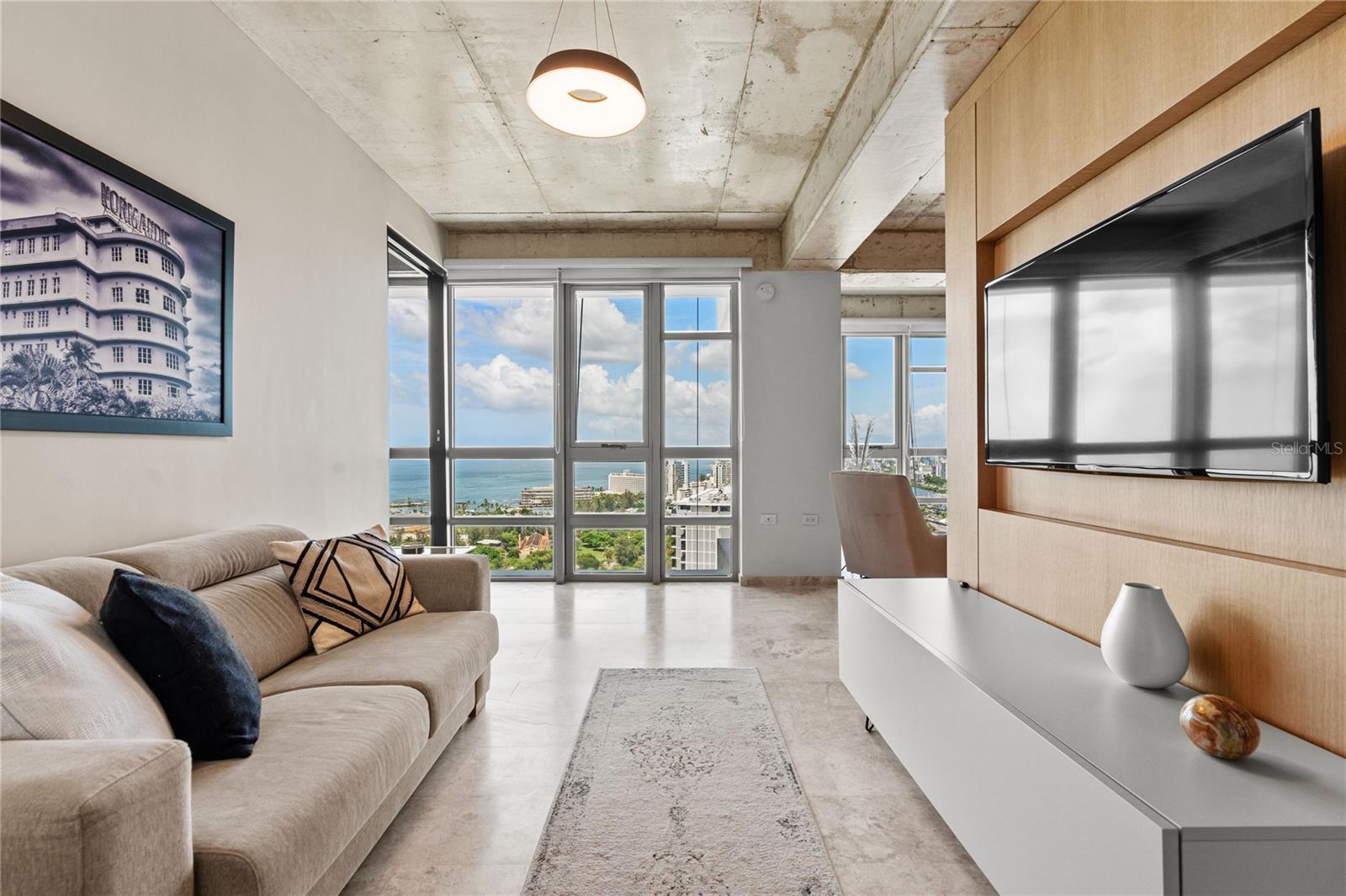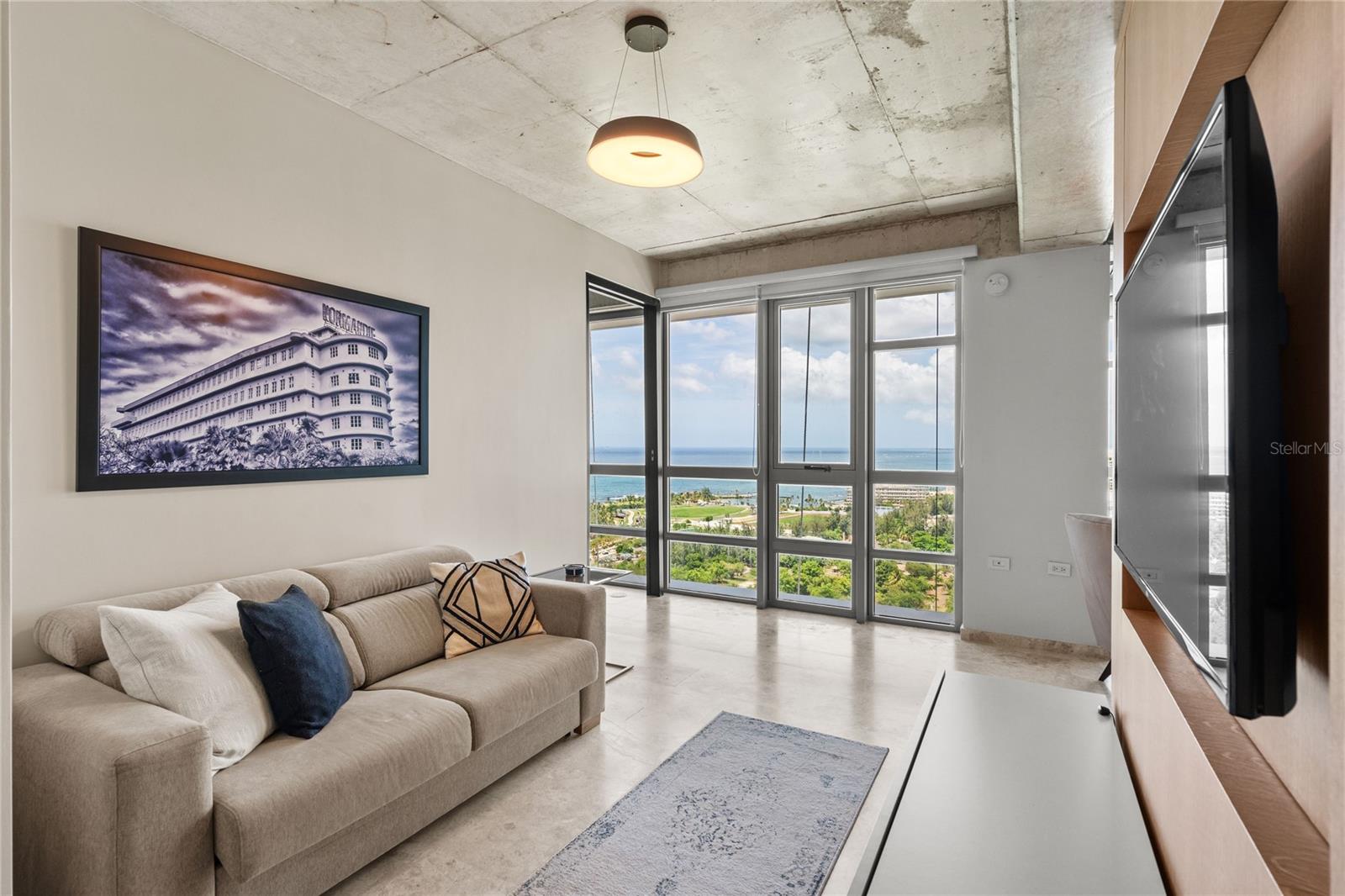Breathtaking views of the Atlantic Ocean, Condado, the Condado Lagoon, El Yunque rainforest, and the San Juan Marina from this exquisite Sub-Penthouse in Atlantis Condominium, a 24-story modern and luxurious building. Centrally located between Old San Juan and El Escambron, one of Puerto Rico’s prized Blue Flag beaches. North of the building there is a bike path along cliffs of the ocean that leads you past the Capitol and straight into Old San Juan.