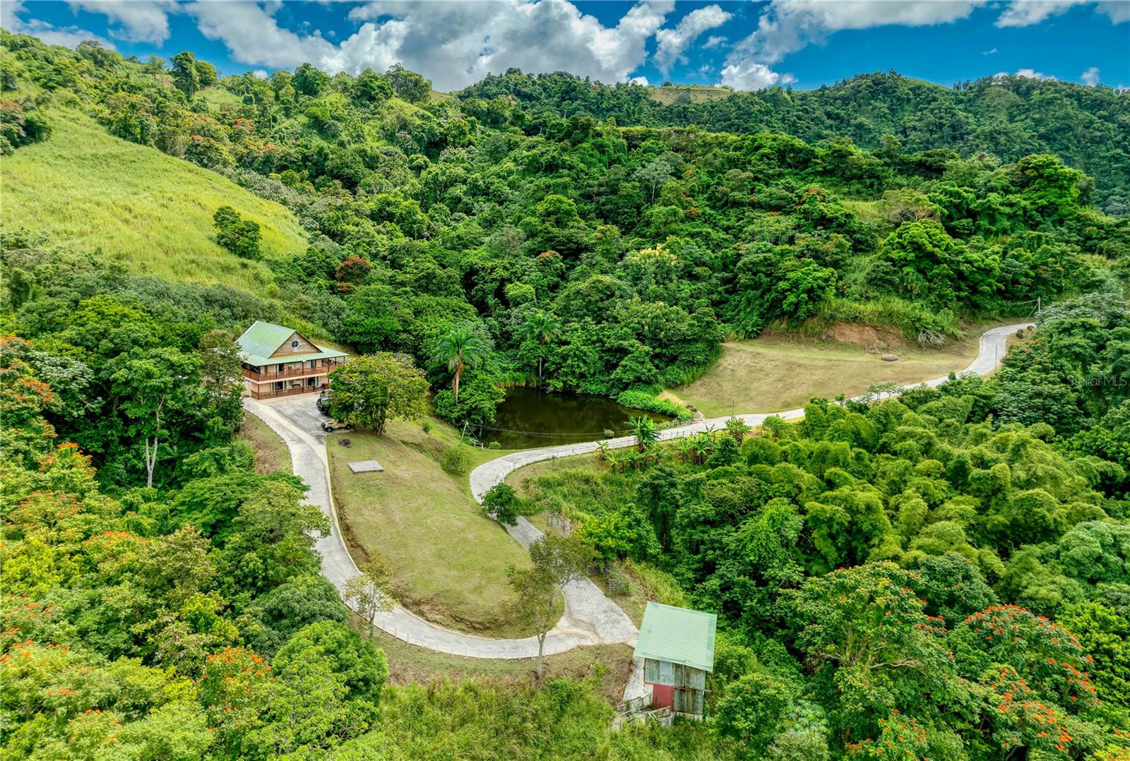 Discover a tranquil lifestyle within Hacienda Ubia, situated on the mountainside of Coamo. Composed of almost 100 acres, this rare to market property offers potential owners the unique opportunity to create whatever project they envision. Build your dream home with immeasurable agricultural and income-generating potential to serve as your ideal investment property. The 3-bed, 4-bath residence with approx. 2,901 interior Sq. Ft. showcases charming rustic features throughout, such as exposed beam vaulted ceilings, eat-in country kitchen and a captivating warmth that envelopes the entire 2-level home. Enjoy scenic panoramic vistas from the covered patio and terrace, affording approx. 2,852 Sq. Ft. of alfresco space overlooking the mountains, pond and lush tropical flora. Coamo is located on the south-central region of the island, known for its natural beauty and relaxing hot springs. 30 Minutes away from the Mercedita International Airport in Ponce and Santa Isabel's breathtaking beaches.
