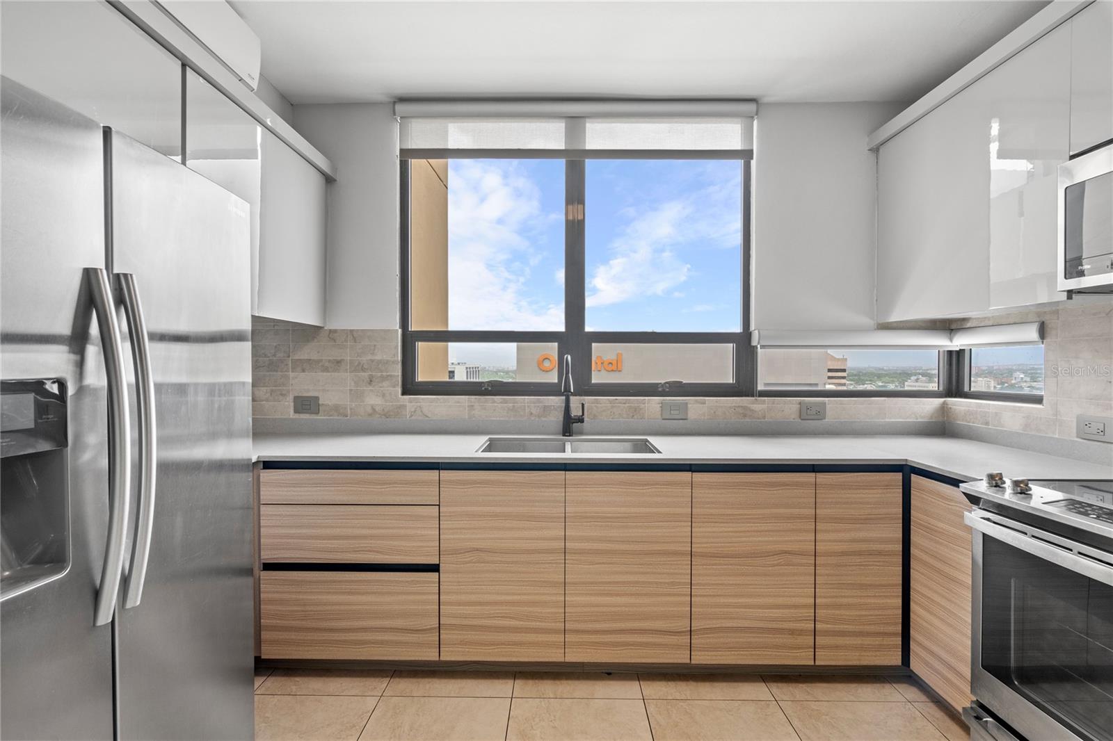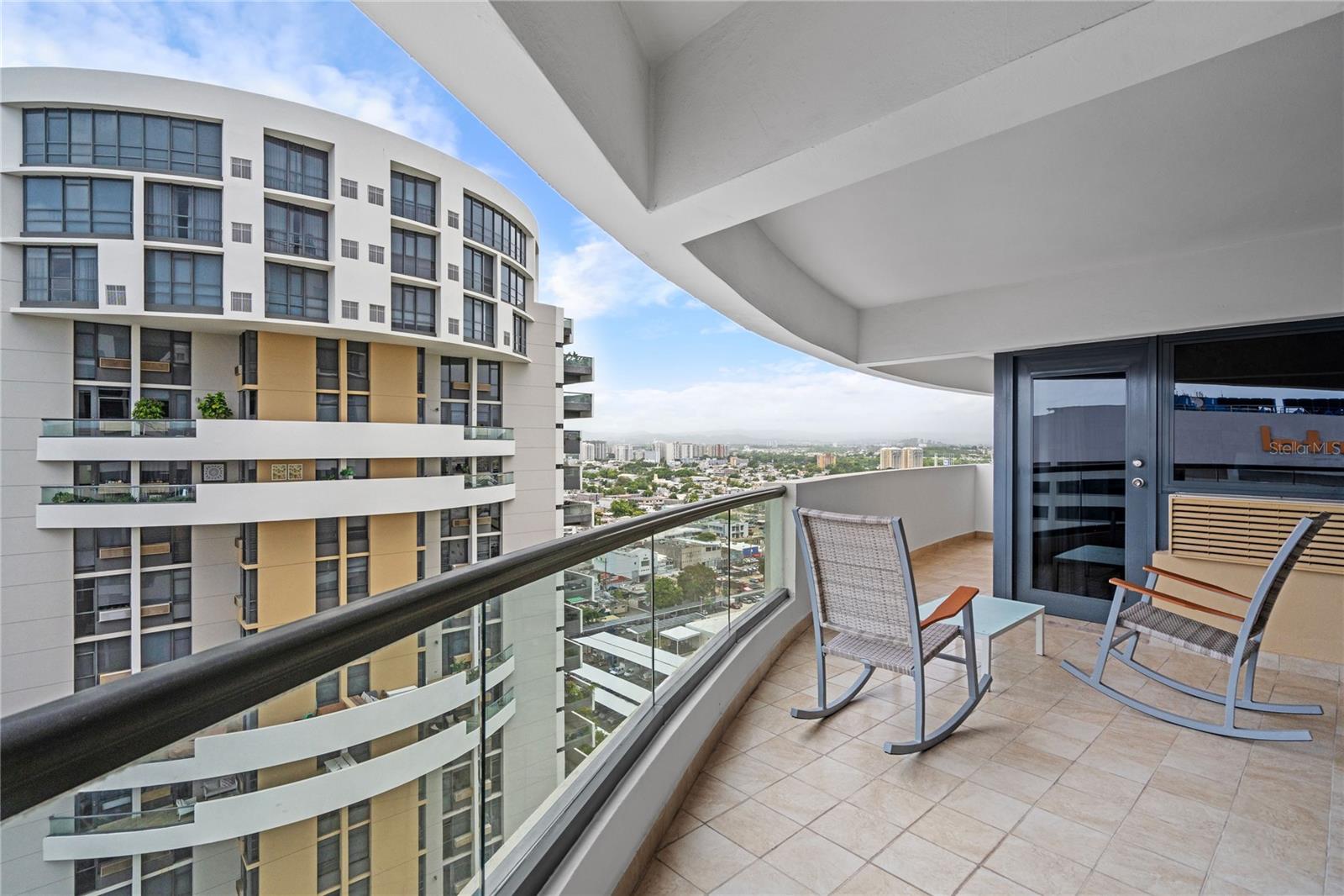 Quantum Metrocenter, known for its two imposing circular towers and recognized for its architectural brilliance, stands among the tallest buildings in Puerto Rico. This beautifully furnished and decorated apartment features 3 bedrooms, 2 full bathrooms, and a spacious living and dining area with floor-to-ceiling glass windows. The unit boasts one balcony and one terrace: one accessible from the living room area and another that can be accessed through all three bedrooms. The recently renovated modern European-style kitchen with quartz countertops, complements the elegant interiors. The master suite includes a walk-in closet and a luxurious bathroom with a double vanity, whirlpool, and separate shower.