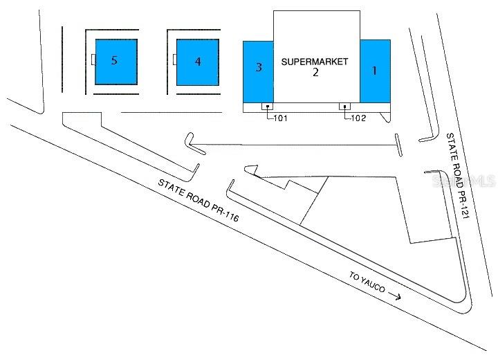 Former Yauco Shopping Center building was damaged in a fire. Spaces 1 and 2 are available for remodel. The others need to be built.