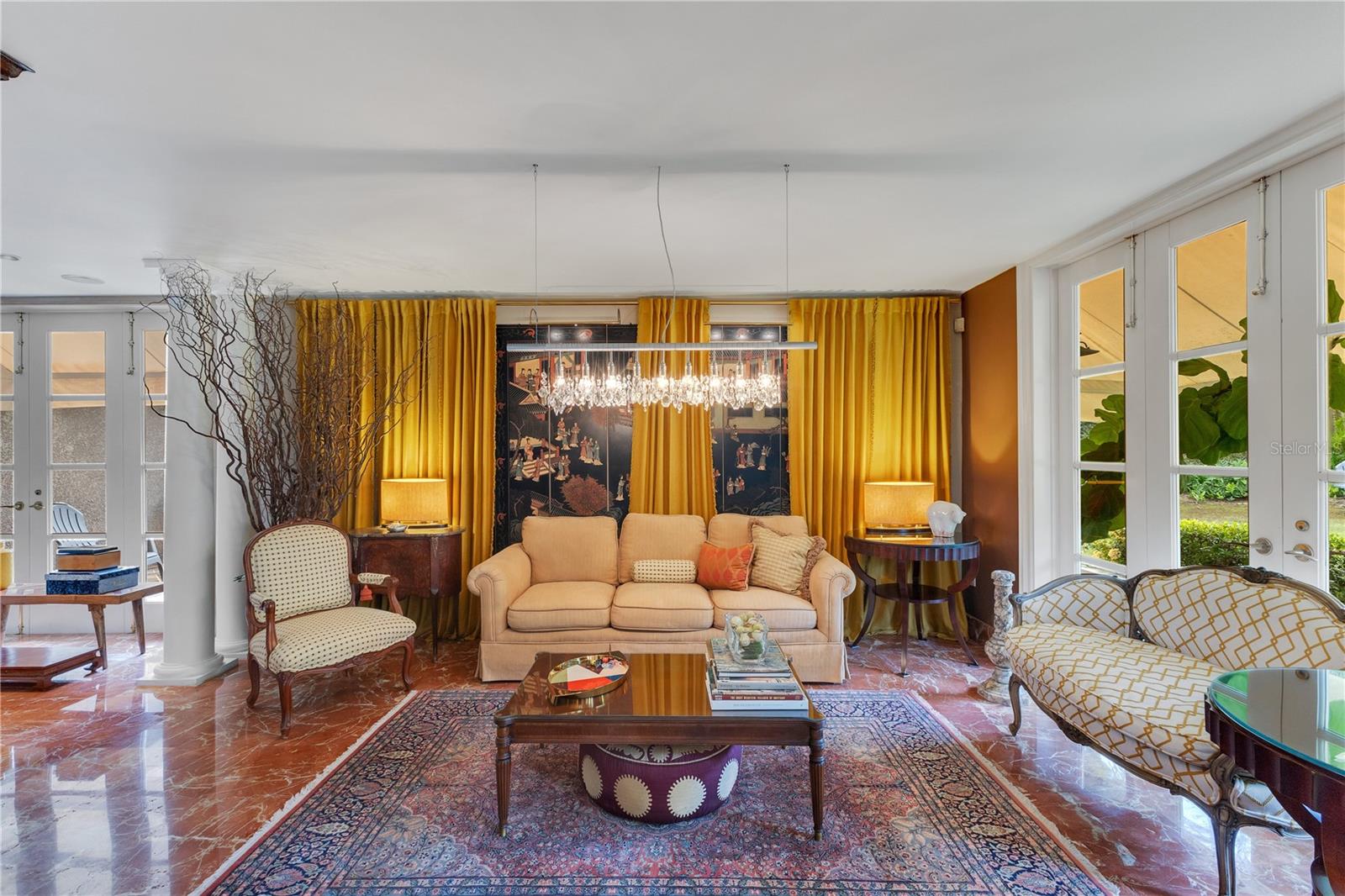This stunning two-story mansion features exquisite marble floors, elegant French doors, and a spacious backyard patio enclosed by French doors and equipped with a French drainage system—perfect for entertaining and outdoor relaxation.