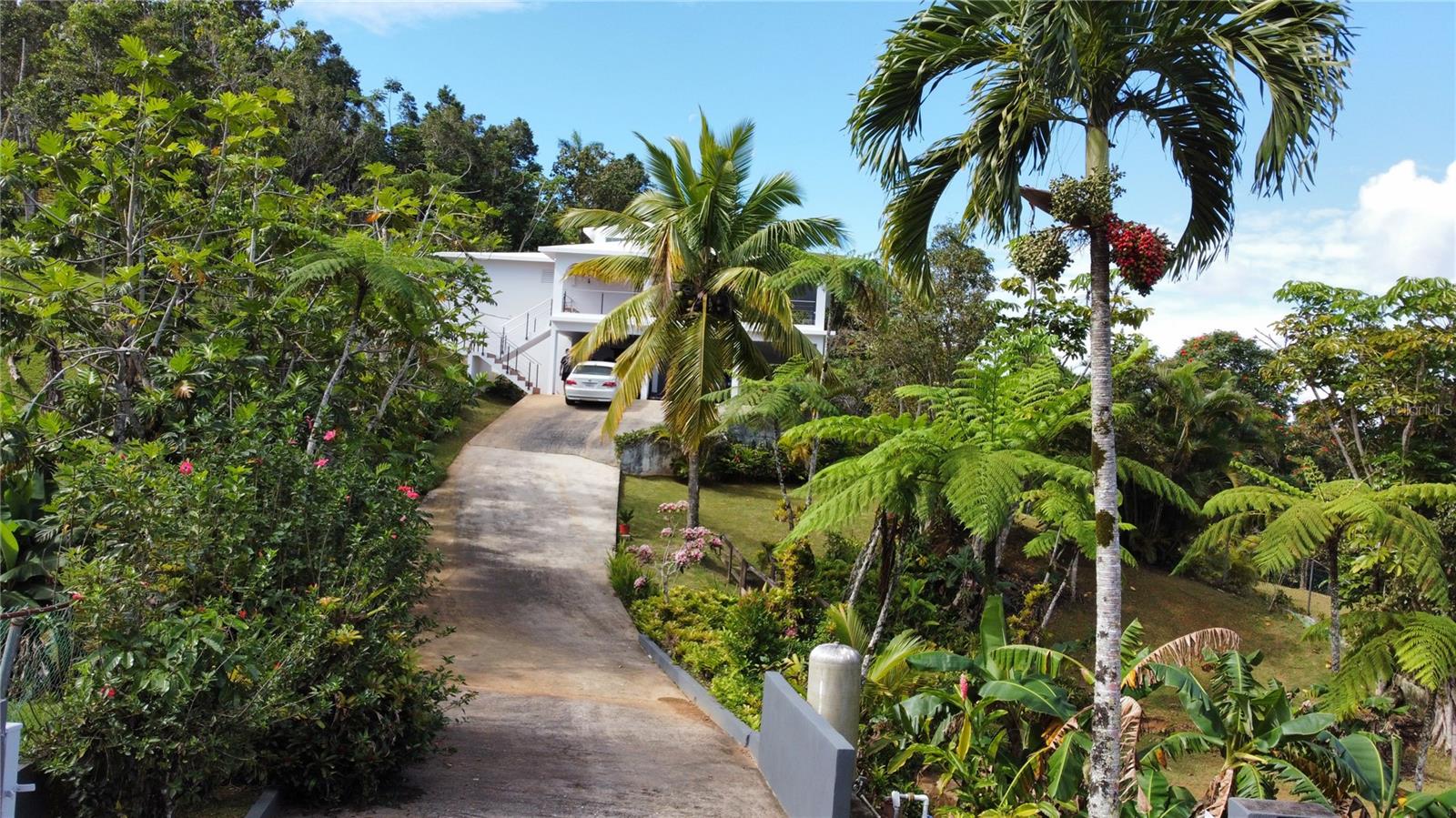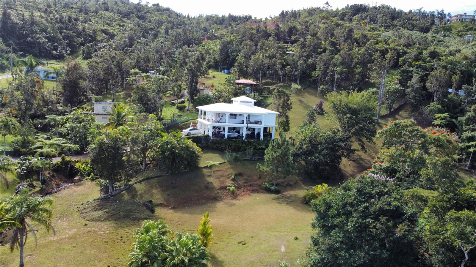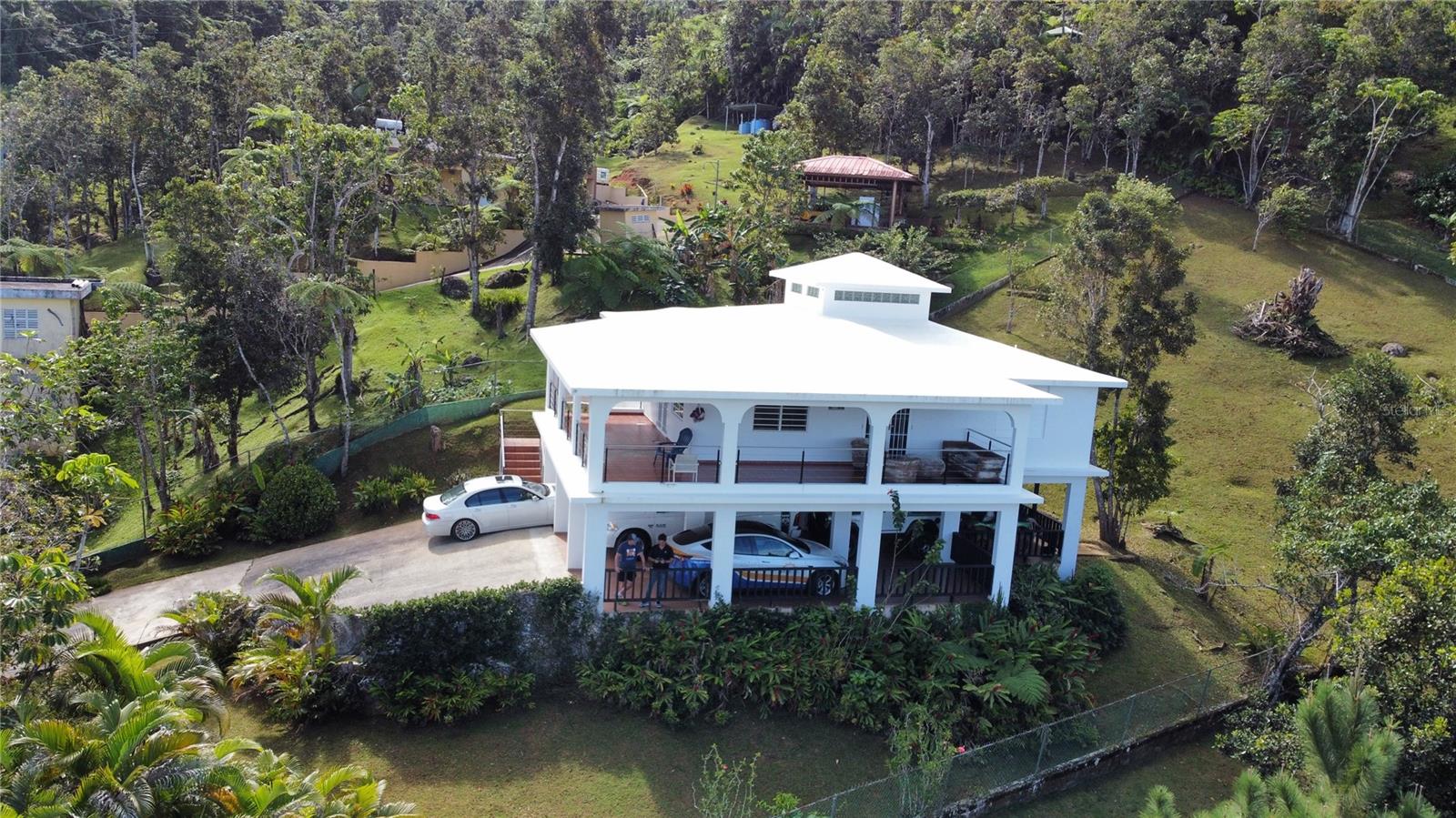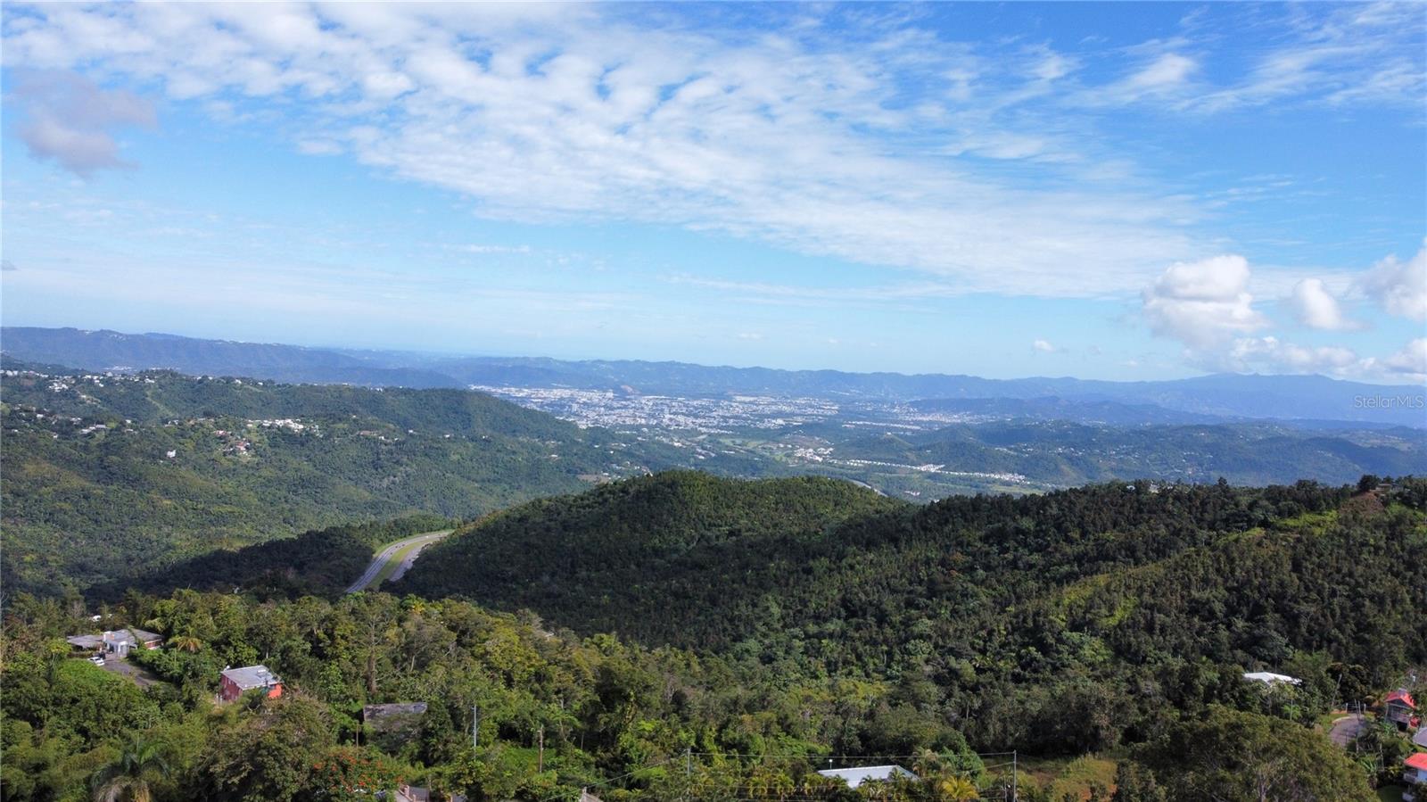 This property at 1800 feet of elevation between Cayey and Caguas is unique with beautiful city views (today February with temperature of 67.7 F). It has 3 bedrooms, 3 full bathrooms, 2 kitchen, ample doble terrace with breathtaking views, covered parking for 5 cars, an electric gate at the entrance with security cameras, and has a sunken water well. Interior high ceilings from 9 to 18 feet. 4,813.32 Square Meter (1.1893 Acre) of land & about 3,500 or more of living space. The property is 5 minutes from the highway. Ideal for family and corporate meetings.