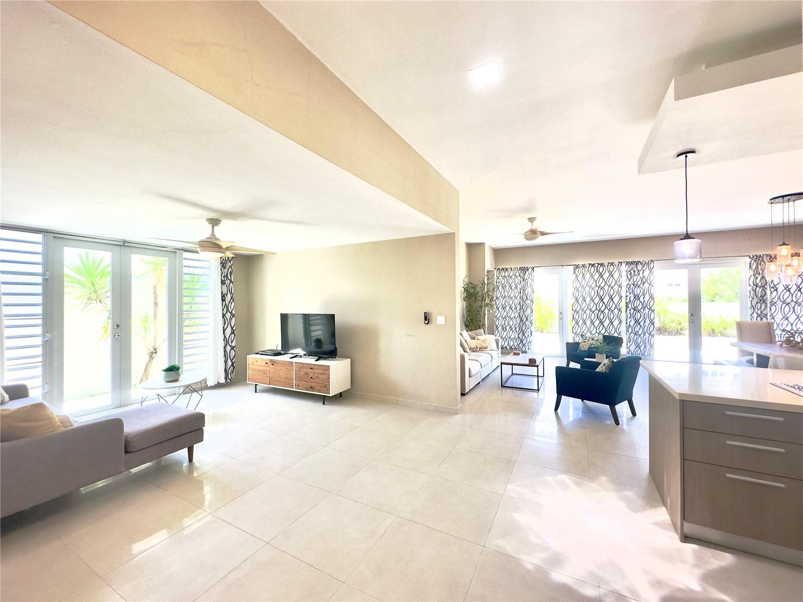 Live the life of your dream by the beach! Nestled in the seclusive Ocean Forest gated community with direct beach access, in between the Atlantic Ocean and the foothills of El Yunque National Rainforest, this beautiful house offers the best of 2 worlds as its name suggests. Very short walk (200 ft. approx.) to the beach and the Wyndham Grand Rio Mar Golf and Beach Resort (less than 1 mile away). It features 2650 sq.ft. of living space, 3 bedrooms and 3 full baths, open layout design with modern kitchen connecting with spacious living, dining and family room, high ceilings, interior patio, outdoor terrace, laundry room and 430 sq.ft. double car garage. House is fully furnished and equipped with A/C in all common areas and bedrooms, stainless steel appliances, wine cooler, solar water heater, water cistern. Alternative energy back up and swimming pool coming soon.