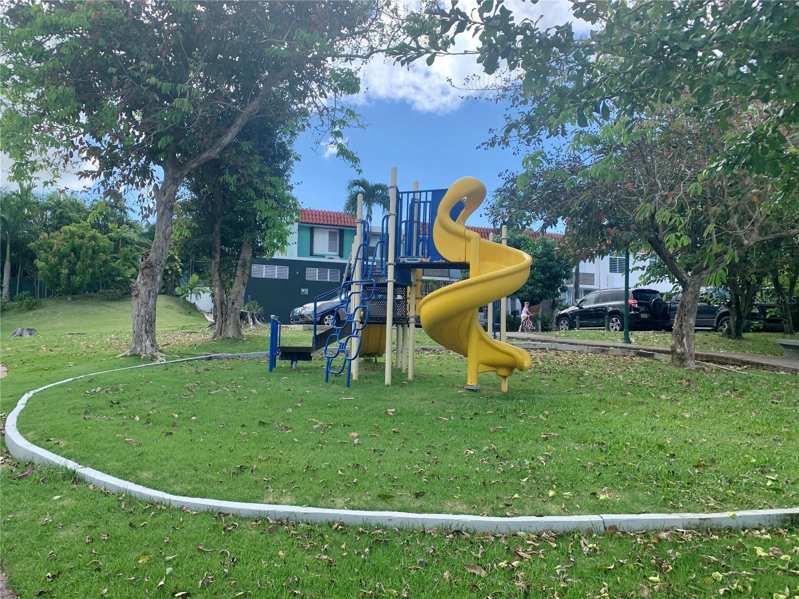 Unique Opportunity at Villa Verde Neighborhood in the heart of Guaynabo City, this Spanish style two level townhouse offers 3 spacious bedrooms, 2.5 bathrooms, and plenty of open spaces in its living dining kitchen areas, plus access to the outdoor patio from the kitchen and family room. The patio/terrace is finished with large coralina tiles and includes an area with a covered terrace. Within the townhouse uniqueness is that it has 2,500 sq ft (GLA) making it one of the most spacious units of Villa Verde. Its indoor finishes include Saltillo Mejicano tiles flooring finishes on the first floor combined with wood look laminate planks in the kitchen and second floor. The Laundry Room includes a counter area and washing sink with large sized washer and dryer. Controlled access with tele entry, walking distance to the park and pedestrian access to Garden Hills North Neighborhood.