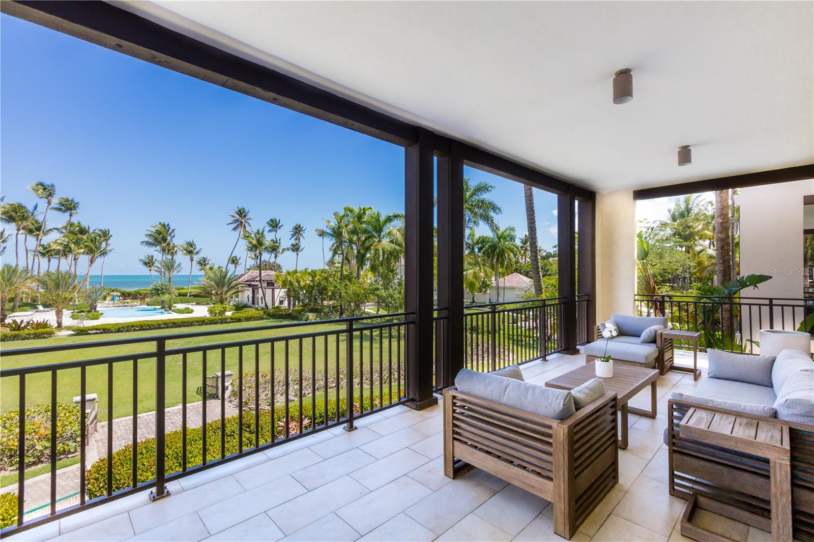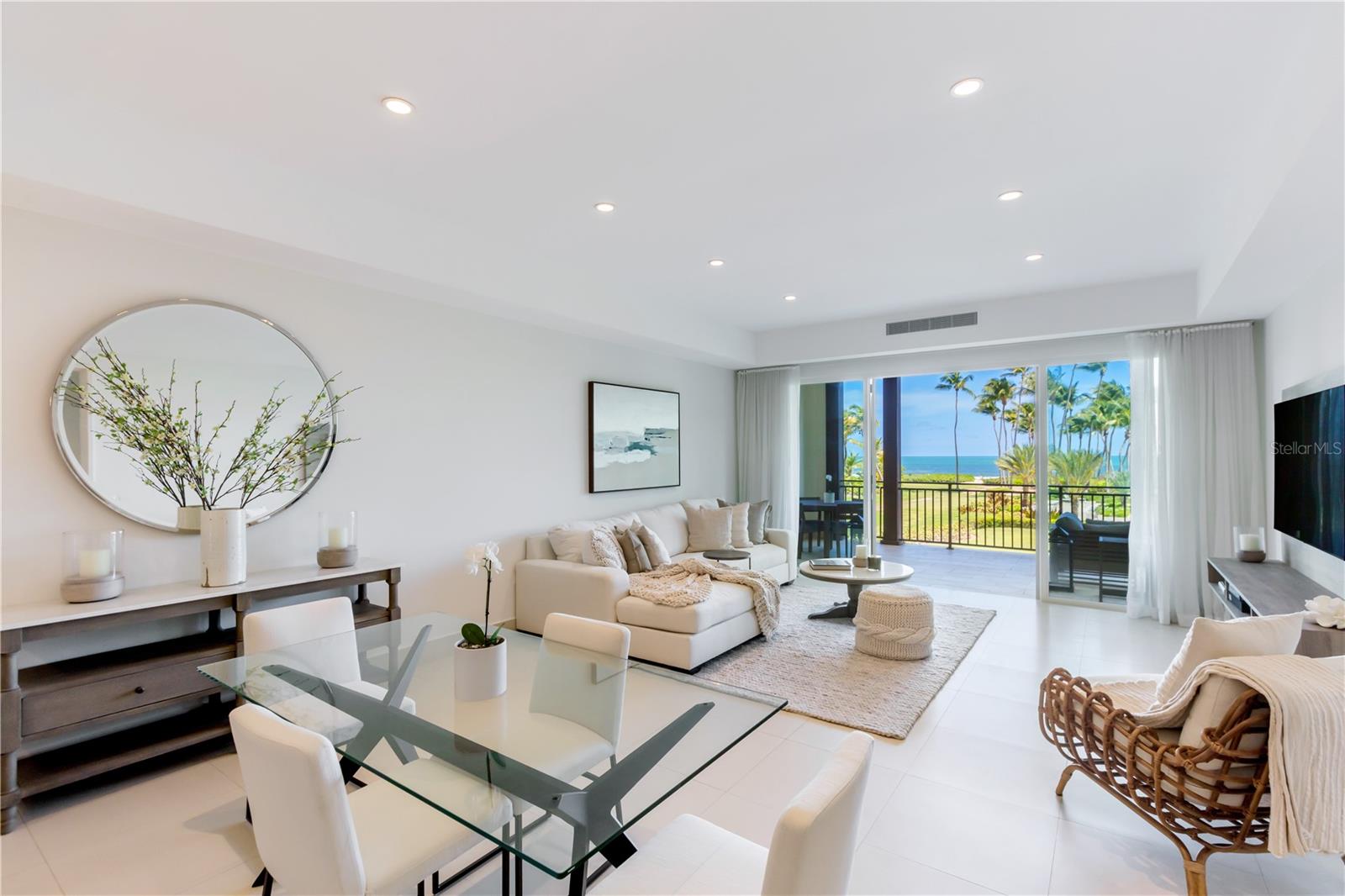 Hidden gem on your new tropical haven beautifully appointed ocean view condominium just-steps away from the beach and the Beach Club, located in the most exclusive residential community in Puerto Rico. The spacious & modern residential unit consists of two bedrooms, and two full bathrooms with extra expansive terrace overlooking the water. Move-in-ready fully furnished and equipped.