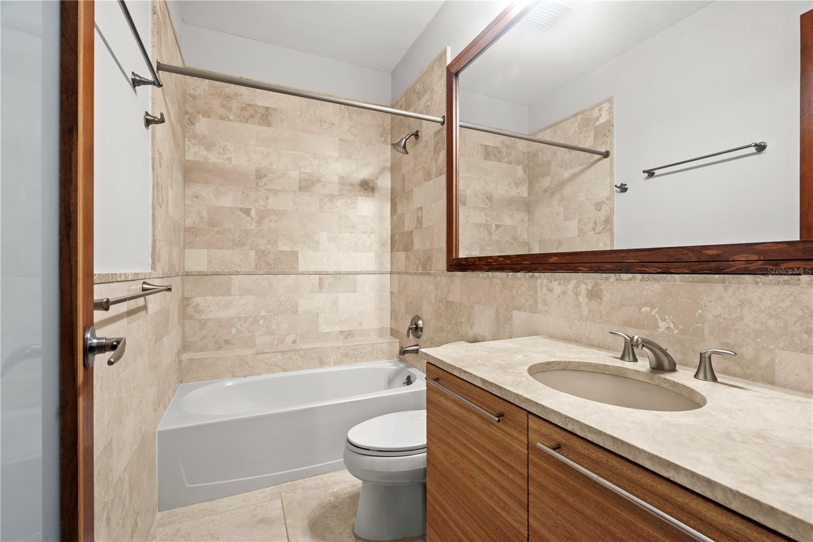 This condo features three luxurious ensuite bedrooms, each with a spacious walk-in closet and bathtub, along with a convenient powder room and a laundry area in the hallway. The open-concept kitchen, dining, and living areas create an inviting ambiance, ideal for entertaining or relaxing. The kitchen is fully equipped and perfect for creating great dishes with spacious countertops.