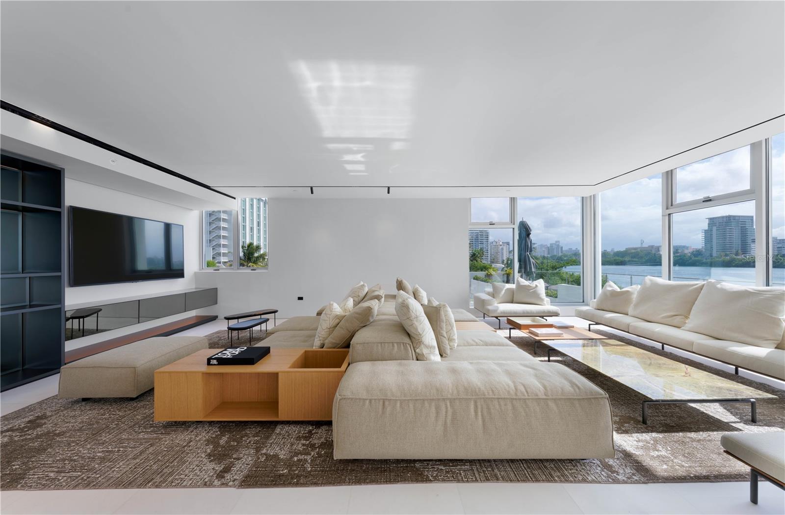 Welcome to your exquisite new home within one of the newest developments at CoBe, also known as Condado Beach. Constructed in 2020 and reimagined in 2024, no expense has been spared within this striking residence with lagoon and ocean views. Spanning the entire floor, the home serves as a modern retreat showcasing tastefully curated furnishing and custom-built accents throughout. Fully equipped with state of the art automation features and technology such as Lutron lighting and shades, as well as ceiling concealed air conditioning conduits for an aesthetic and noiseless comfort. The expansive living area seamlessly connects to the impeccably crafted Poliform kitchen, which affords top of the line appliances and a spacious dedicated pantry with wine repository. Seamless custom designed doors with blond paneling discreetly provide access to all three ensuite bedrooms, including an exquisite primary suite with a beautifully appointed bathroom and custom dual closets that offer an abundance of storage. A versatile flex space that can be converted to a fourth ensuite bedroom adds to the captivating appeal of this remarkable property. Step outside to enjoy the expansive outdoor terraces located on both sides of the residence, one of which overlooks the serene Condado Lagoon, providing the perfect setting for relaxation and entertainment. Evoking the sensation of being aboard a luxurious yacht, watch the manatees frolic in the lagoon with Miramar's stunning skyline as the backdrop. Floor-to-ceiling windows flood the apartment with natural light. The home effortlessly combines style, comfort, and breathtaking vistas. The Peninsula features exceptional amenities, affording a pool, gym, residents' lounge, full backup generator, and 24-hour attendant service. Positioned in the heart of a vibrant neighborhood filled with fine dining, world-class hotels, and lively entertainment, this property offers an unparalleled metropolitan lifestyle in the Caribbean.
