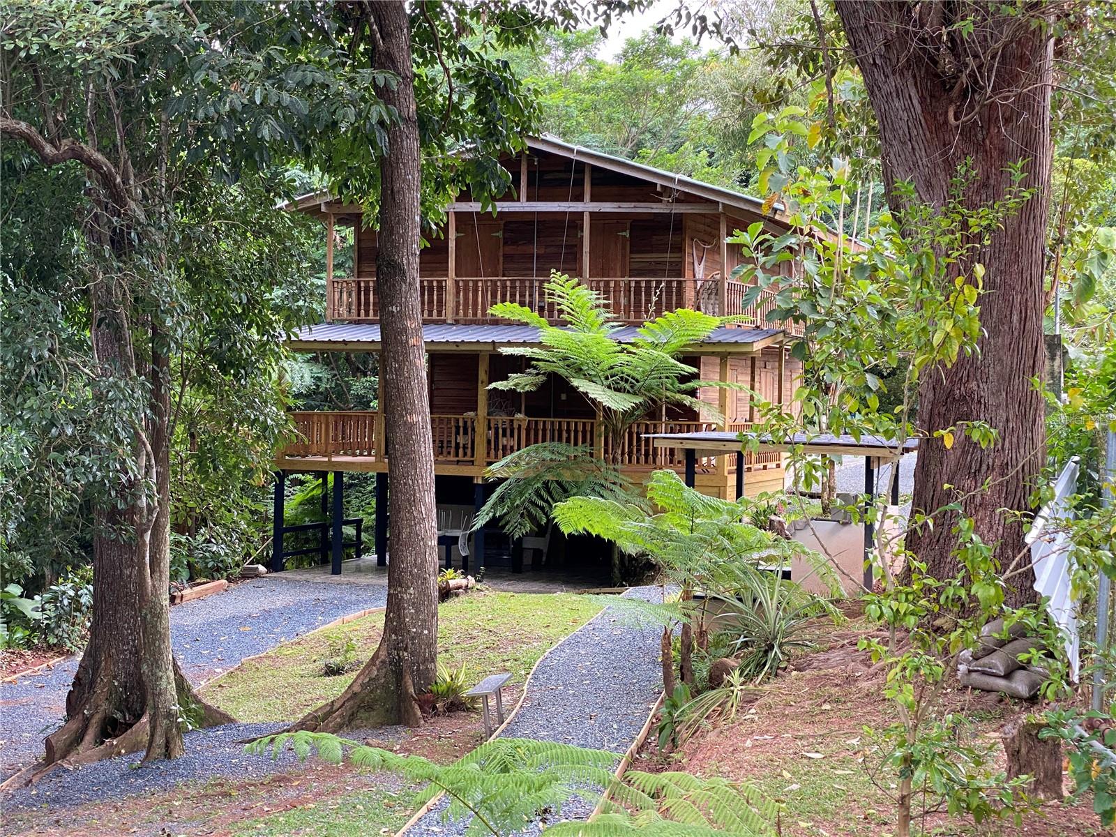 Unique Cabin at the woods of Lares Puerto Rico. Inside of 1.69 Acres, you will enjoy a special wooden cabin ideal for your retreat. Covered and surrounded by nature. The birds and the flowers combine in a perfect get away. Ideal for retirement, or a simple second home. Three levels of structure. Basement has an extra room with an extra bathroom. First Level ( Ground Level ) has kitchen, dining, living, bathroom, laundry, and all you need to relax. Second Level ( 2 bedrooms, high ceilings, balconies, half bathroom, ) . Outdoor cooking area, Outdoor terraces, May areas to enjoy, meditate, write you own books, discover all different types of birds and more. Located in the Barrio Espino, Camino Los Medina State Road 436 km 1.1 Lares Puerto Rico 00669. You have to see this property before someone else buys it. Please provide us proof of funds or pre approval lenders letter prior to schedule the showing appointments. ( no same day showings are permitted by the owners ) . Thanks for reading .