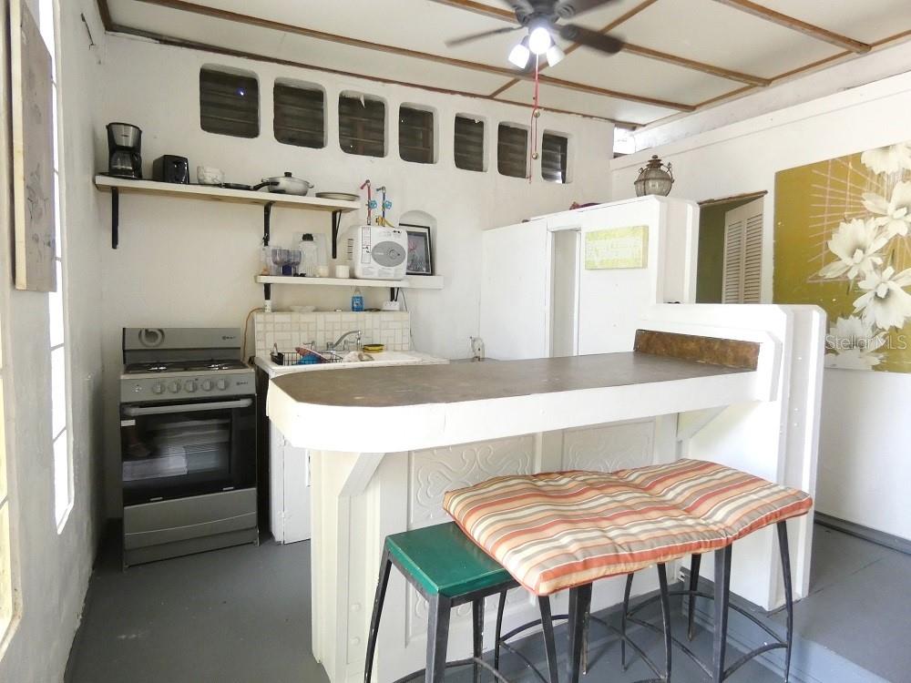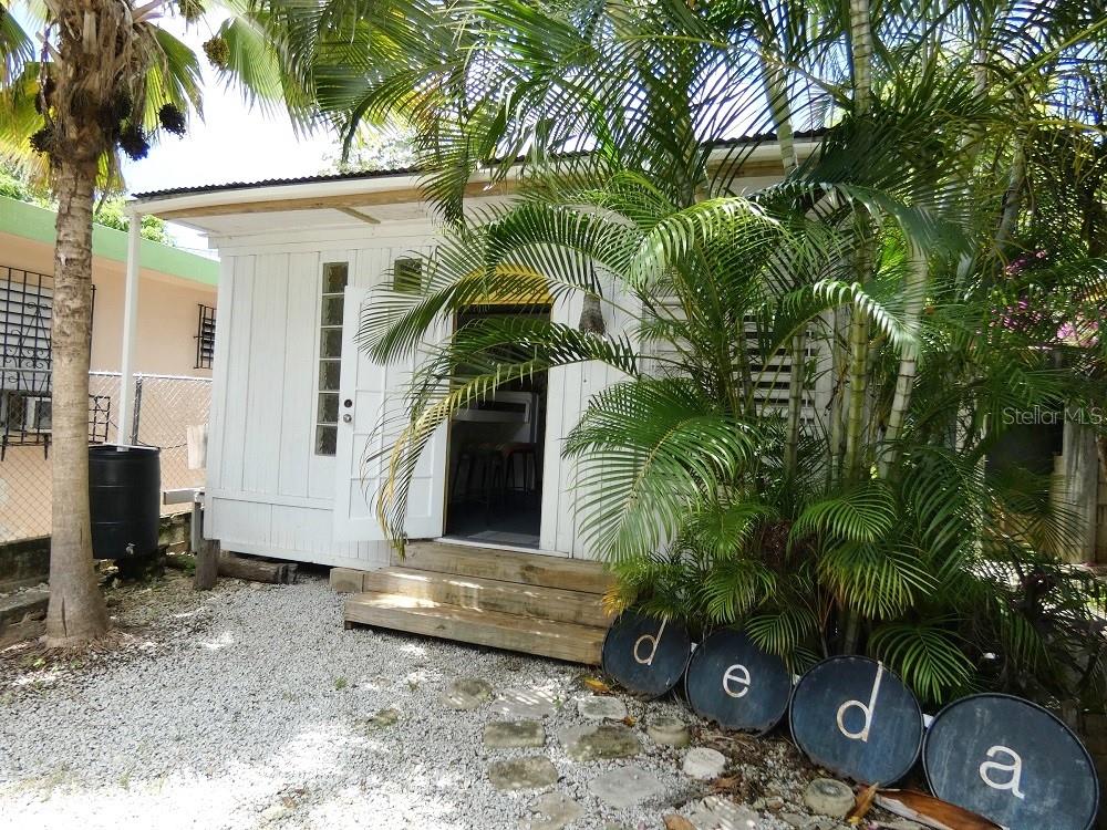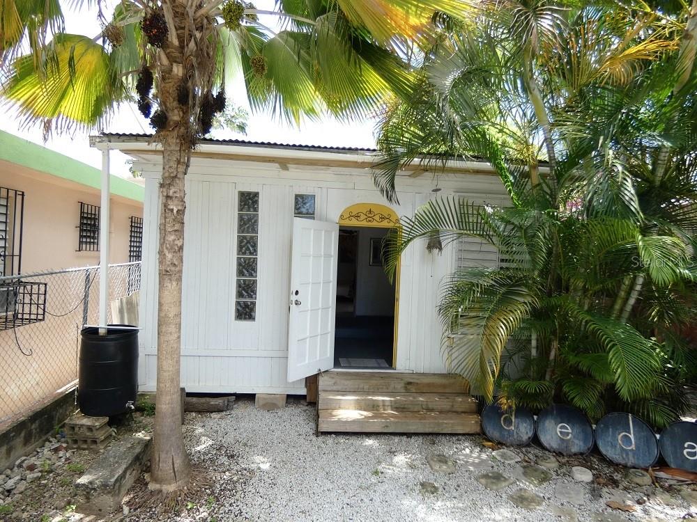 PRIVATE IN TOWN COTTAGE! Funky but charming, affordable one bedroom vacation cottage in the heart of Isabel II. Surrounded by walls, it is surprisingly private and peaceful, yet within easy walking distance to bars, restaurants, and shopping. Minimalist in concept but completely solar and off-the-power-grid. Romantic bathroom with large shower window. Built-in drop down desk. Storage shed with laundry hook-up. Shady small garden that incorporates some cool sugar cane mill artifacts. Elevated seating area in the front yard, where the old house stood. The original front half of the house is pressure-treated wood, the rear addition is concrete. Gracefully survived hurricane Maria. Titled but not mortgageable.