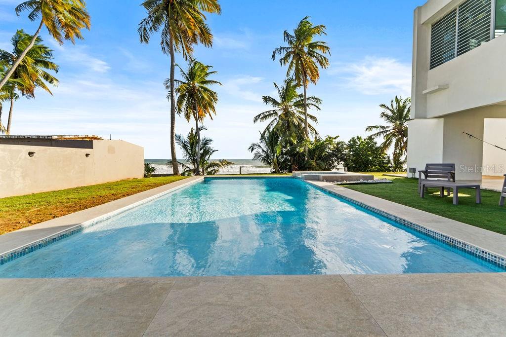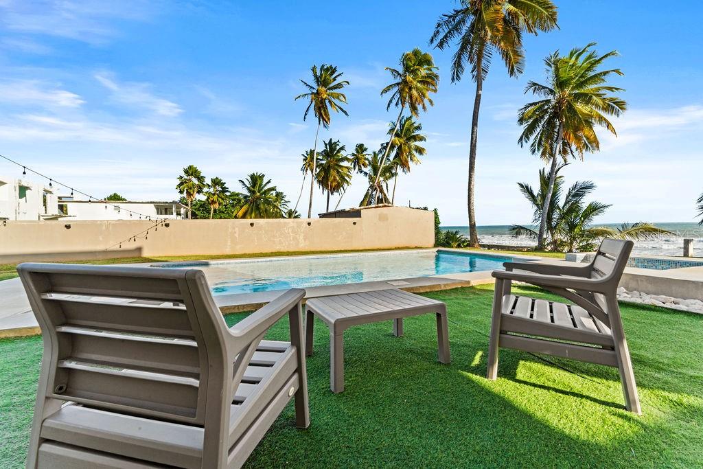 Mon Trésor House in Patillas, Puerto Rico, is a beautifully remodeled beachfront property offering excellent investment potential and versatility. Situated on a spacious 0.6+ acre lot, this 2023-updated home features two separate levels, each with its own entrance, making it ideal for a variety of living or rental arrangements. The property includes five bedrooms, five bathrooms, two living areas, and two full kitchens, providing ample space and functionality. Outdoor highlights include two terraces, two balconies, a brand-new pool, a BBQ area, and direct beach access. Conveniently located near dining, recreation, and water activities, this home presents a rare opportunity for those seeking a coastal property with income-generating possibilities. The expansive lot also allows for future expansion.