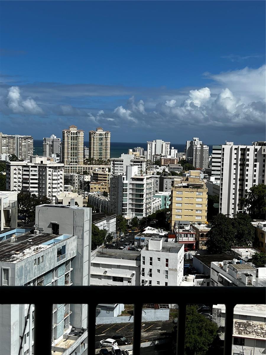 Beautiful view of the ocean to the Condado area, two rooms , one bath, kitchen with dining room and living room. External pool area with barbecues. This building have a commercial area and restaurants around it.