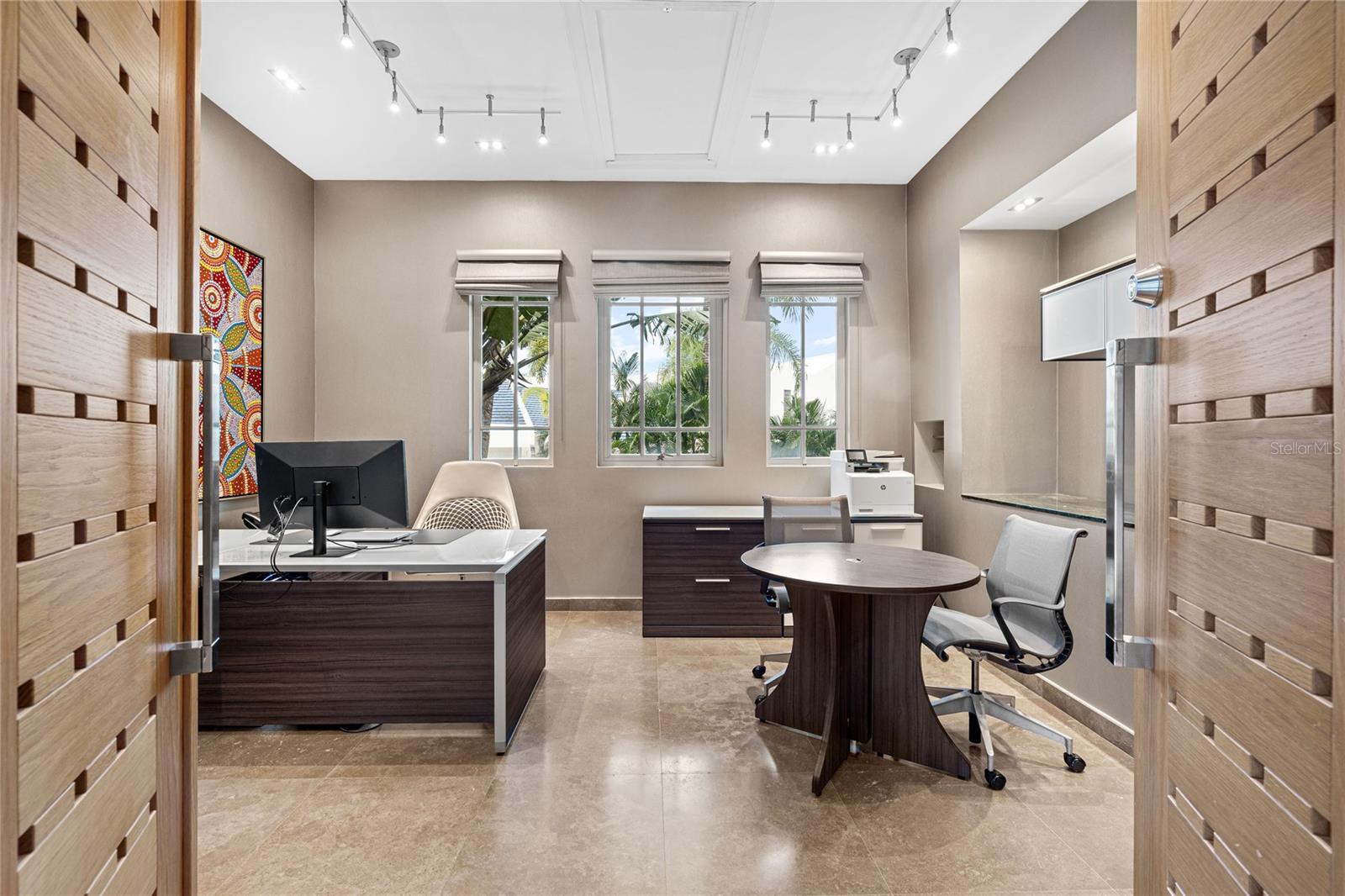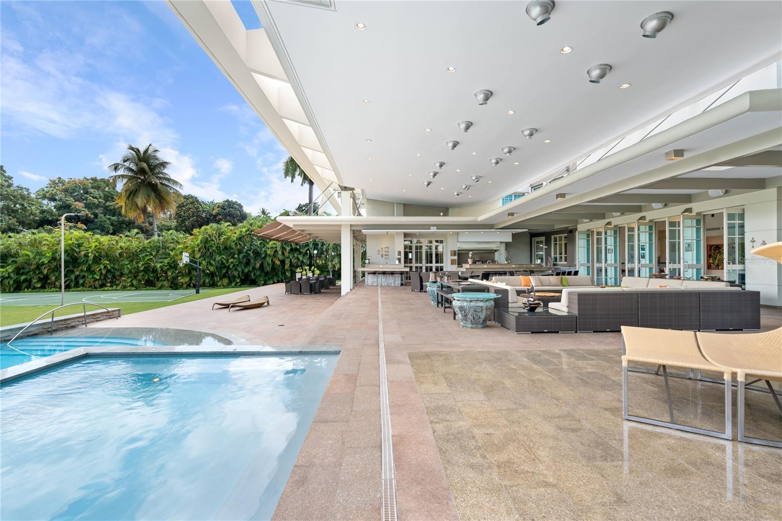 Located in the upscale San Patricio area of Guaynabo, this masterpiece of modern architecture was designed by award-winning architect Carlos Betancourt, epitomizing sophistication and exclusivity. Spanning 10,000 sqft of interior space and nestled on 1.2 acres of meticulously manicured grounds, this home features soaring vaulted ceilings, imported Italian flooring, and custom-designed interiors, including a bespoke kitchen and cabinetry. Expansive living spaces, an executive office, and an entertainment room seamlessly blend elegance and functionality. Inside, seven luxurious bedroom suites—including an opulent master sanctuary—, eight luxurious full bathrooms and two half bathrooms, provide unparalleled comfort, while Valcor high-impact windows and premium finishes enhance the home’s timeless beauty. The grand layout, enriched with exquisite craftsmanship, creates a refined ambiance for both daily living and entertaining.