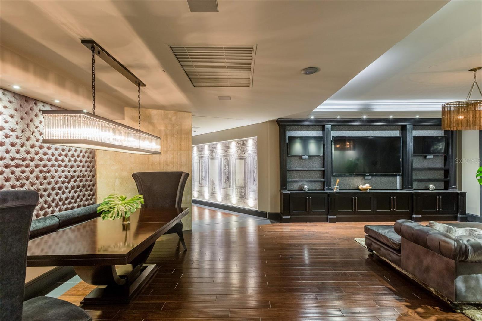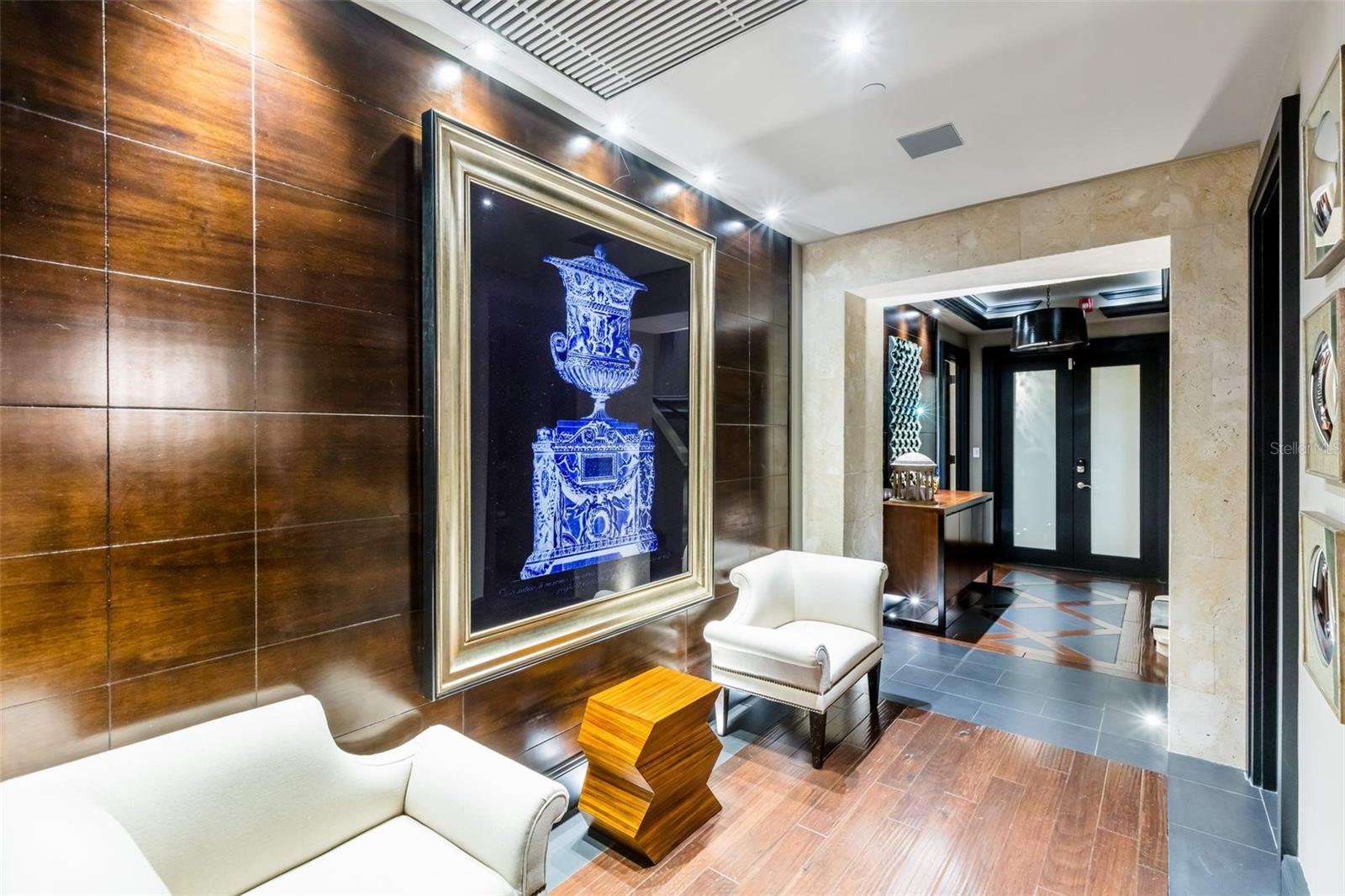 The fully equipped office room provides direct access to one of the terraces. Enjoy a nice workout in your home gym which includes equipment from Body Solid. Next to the fitness room is the entertainment room with a pool table by Olhausen, manufacturer of the best billiards in the USA. The private theater outfitted with plush upholstered seating, dramatic cove lighting to make viewing the large projection screens even more enjoyable, will be your preferred room whether you enjoy watching movies, a World Series Game, or the Super Bowl. The apartment has a full automations system including Lutron lighting and Sonos sound throughout.