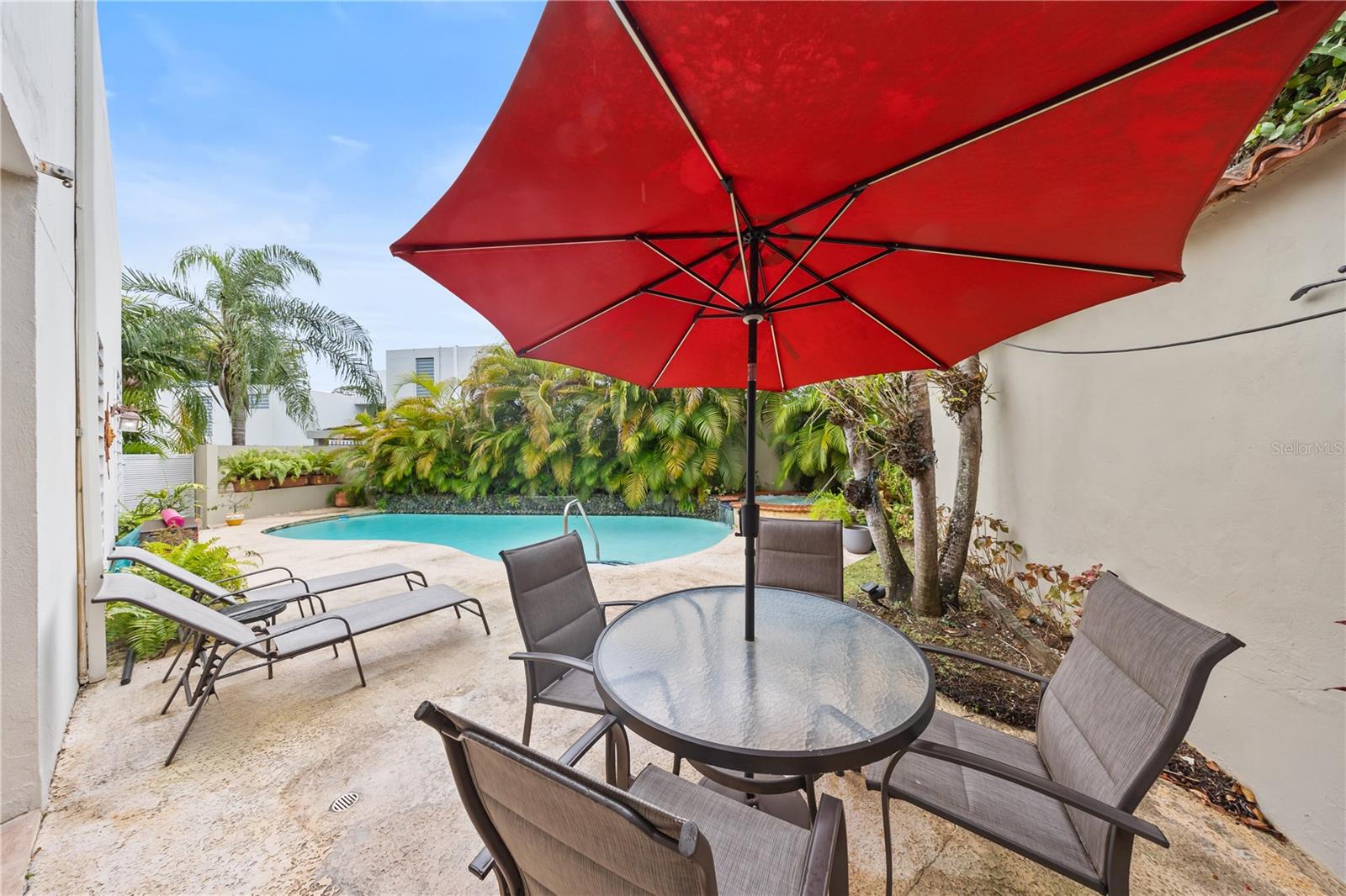 This stunning split-level home offers 3,815 sq. ft. of living space on a 4,940 sq. ft. lot, situated at the end of a quiet cul-de-sac in one of San Juan's most sought-after neighborhoods, with easy access to the Luis A. Ferré highway, Montehiedra, and Los Paseos. The open-concept design fills the home with natural light and offers effortless flow between the living and dining areas, and a spacious U-shaped kitchen with ample storage and a picture window overlooking the private rear terrace. Two terraces, one adjacent to the kitchen for casual meals and another in the rear, create perfect spaces for both daily enjoyment and large gatherings. A resort-style pool with a whirlpool, surrounded by tall palm trees for added privacy, enhances the outdoor experience. On the third level, you’ll find two large bedrooms, a full bathroom, and a versatile studio space ideal for a library, music room, or cozy family area. The private master suite on the upper level offers a walk-in closet, private bath, and access to a private roof terrace for ultimate relaxation. Premium upgrades include marble floors in the entry and main living areas, an 11KW gas generator, an 800-gallon cistern, five split A/C units, and one energy-efficient wall unit. The home is equipped with high-end appliances including a new side-by-side refrigerator with inverter technology, stove/oven, and microwave. Priced at $619,000, this home offers an unbeatable combination of space, luxury, and convenience. Don’t miss out—schedule your private showing today!