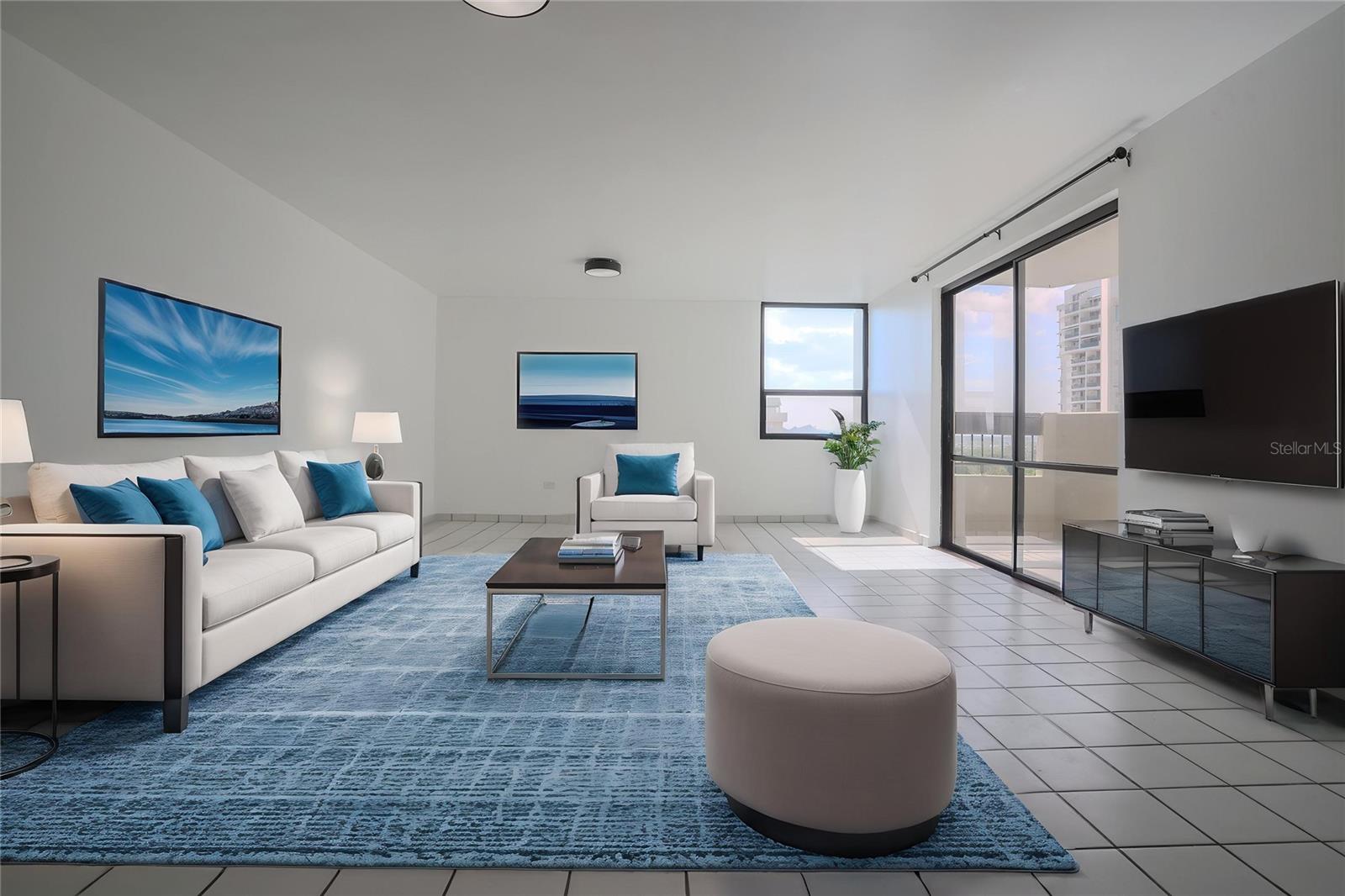 One or more photo(s) has been virtually staged. Comfortable 3-bedroom, 2-bathroom 14th-floor corner unit with balcony and panoramic views. Building amenities include 24/7 gated security, front desk, daily maintenance team, high-speed fiber internet, pool, and BBQ area. Centrally located in Hato Rey with close access to all highways, Plaza Las Américas, El Coliseo, restaurants, pharmacies, hospitals, the financial district and more right next door. Includes 1 protected parking space with more parking spaces available for rent.