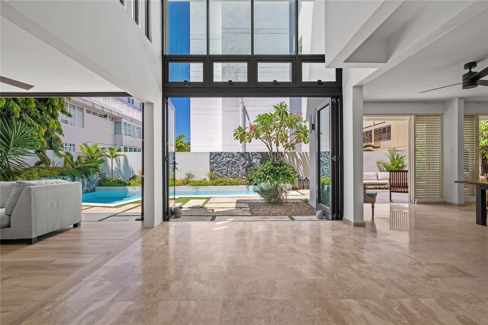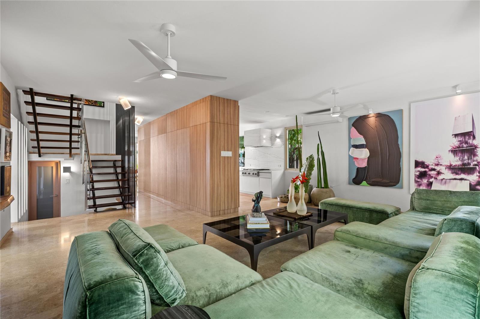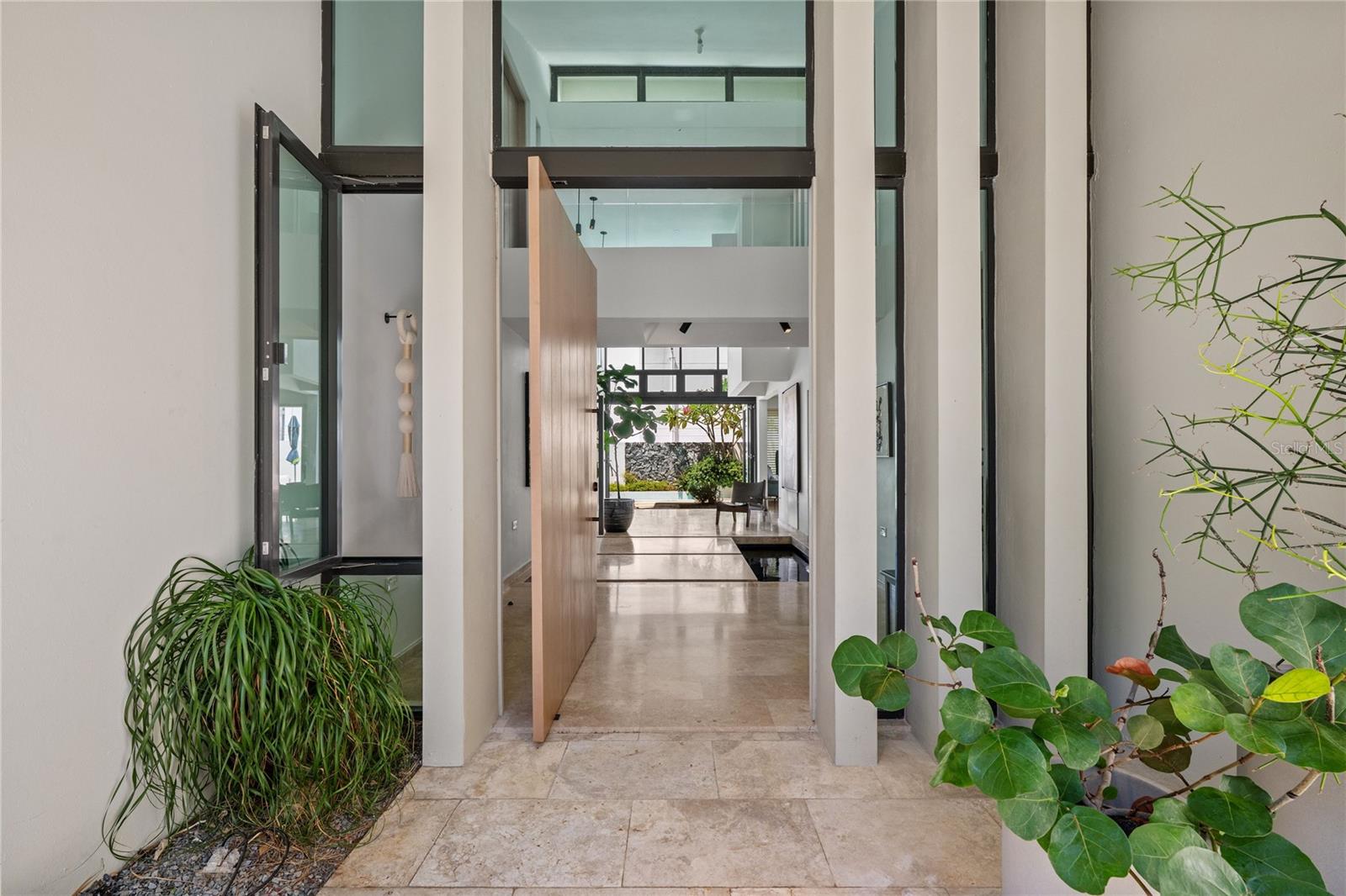 Upon arrival, you are greeted by soaring 20-foot ceilings and bespoke natural stone flooring that extends gracefully throughout the home. Expansive 9-foot ceilings carry through the main living areas, where custom Puerto Rican hardwood accents and designer furnishings by Bonaldi—curated by Attiko—cultivate a sophisticated yet inviting atmosphere. Integrated Sonos audio, Century Lighting, and hurricane-rated Airmaster windows enhance both comfort and peace of mind.