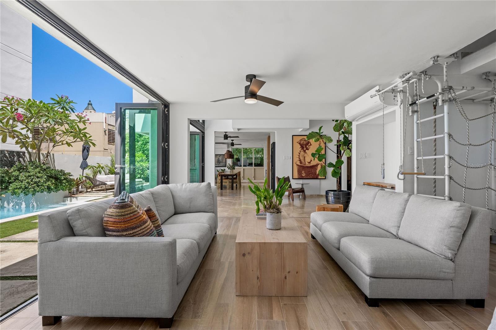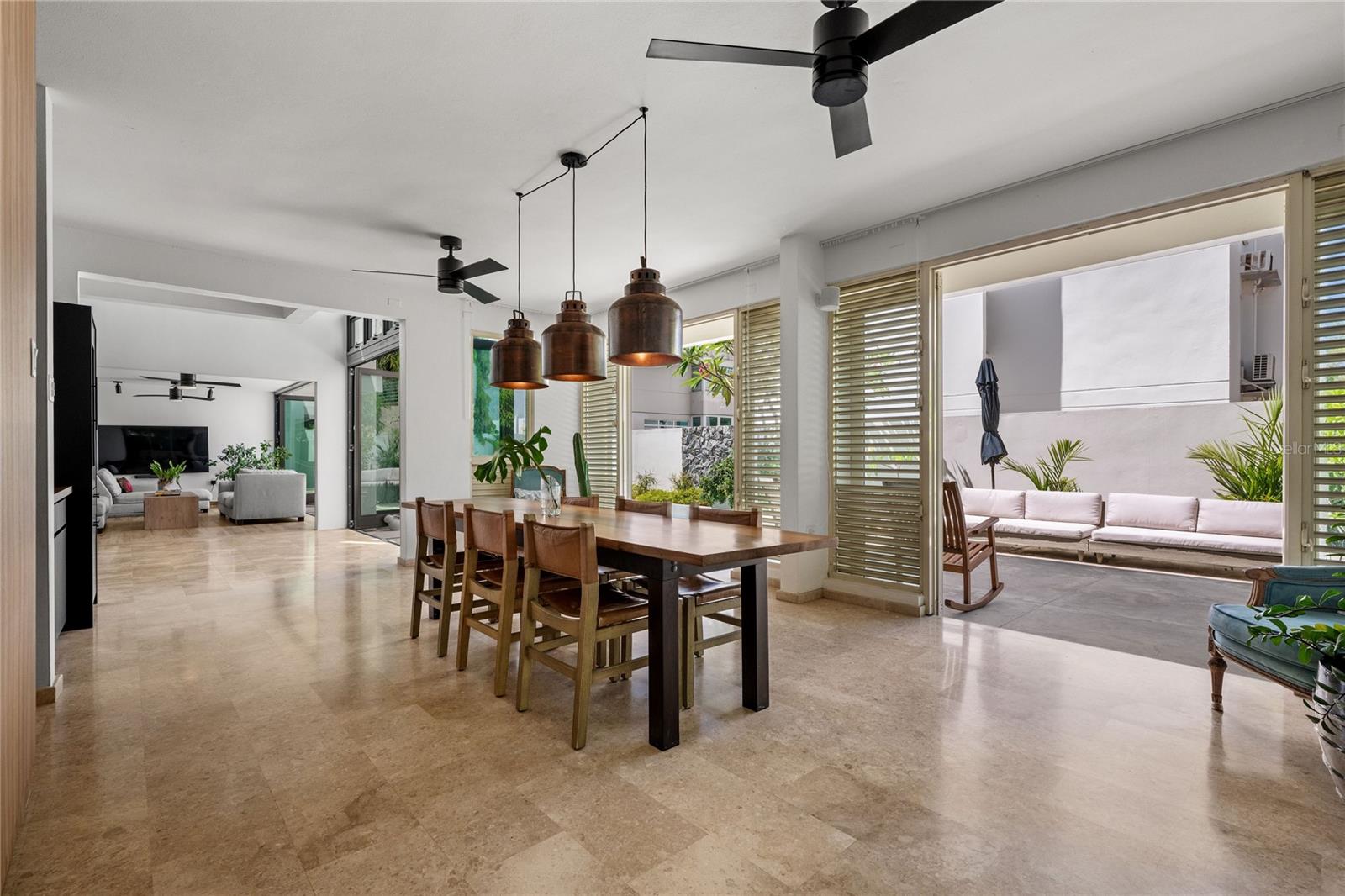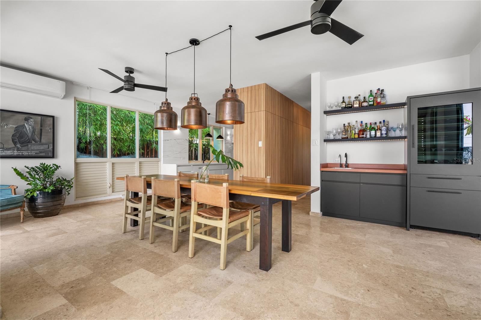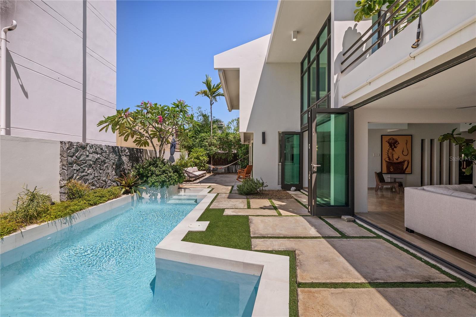 Upon arrival, you are greeted by soaring 20-foot ceilings and bespoke natural stone flooring that extends gracefully throughout the home. Expansive 9-foot ceilings carry through the main living areas, where custom Puerto Rican hardwood accents and designer furnishings by Bonaldi—curated by Attiko—cultivate a sophisticated yet inviting atmosphere. Integrated Sonos audio, Century Lighting, and hurricane-rated Airmaster windows enhance both comfort and peace of mind.