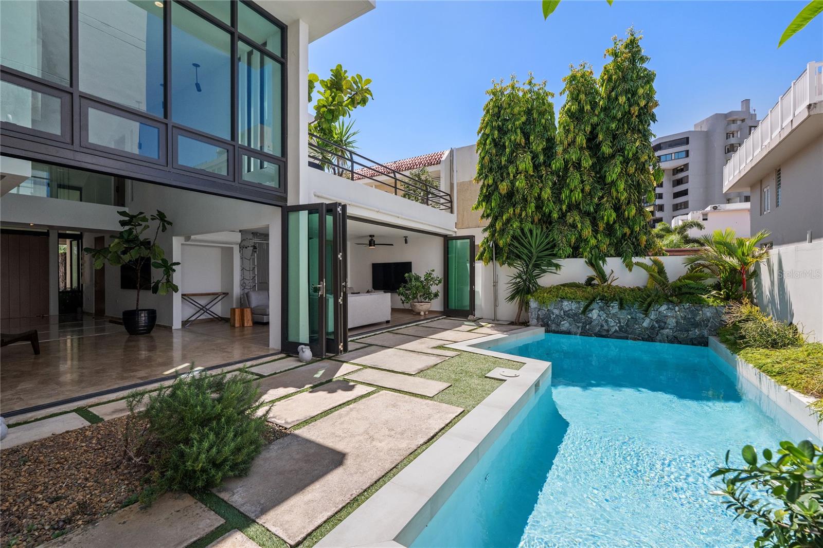Introducing a meticulously crafted architectural residence, ideally located in the prestigious neighborhood of Miramar. This extraordinary four-bedroom, three full and two half-bath home offers over 3,500 square feet of refined living space, complemented by a separate 550-square-foot guest suite or office. Originally built in the 1990s and thoughtfully reimagined by Taller de Arquitectura’s Margarita Fullana, the property seamlessly blends timeless architecture with modern luxuries, all set within a lush, private landscape. A true urban oasis.