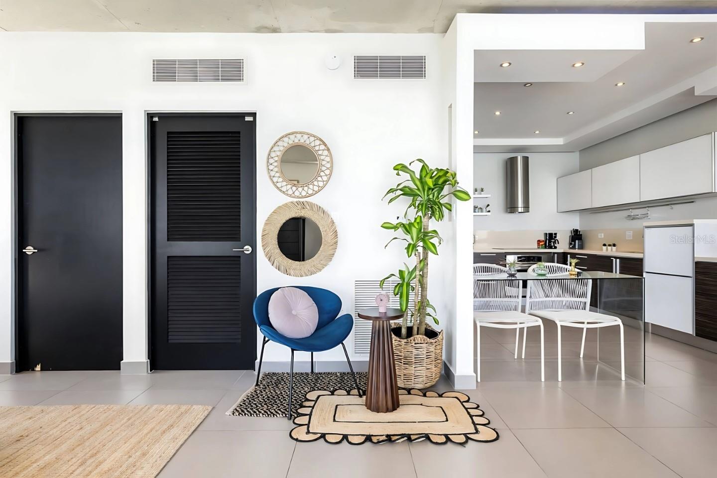 Discover unparalleled luxury and investment potential in this stunning high ceilings loft open floor plan consisting of living room, dining room, one bedroom convertible to 2 bedrooms, laundry and walking closet with two full bathrooms. Ceramic tile flooring, and expansive windows. Fully equipped with modern appliances, including oven, cooktop, dishwasher, refrigerator, washer, and dryer. Built in 2010, this fully equipped and furnished 995-square-foot residence combines modern elegance with breathtaking views of the city skyline, lush parks, and the Atlantic Ocean. Perfectly suited for short-term rentals, this property generates an impressive $2,000 monthly net income through Airbnb, making it an ideal choice for savvy investors or those seeking a chic urban retreat. (The current Property Manager is excellent and would be happy to continue if the new Owner wishes.) Annual Insurance fee $3,783.32. Move-in ready or rental-ready, complete with stylish furnishings and window treatments. Enjoy gated community living with 24-hour guard service, closed-circuit cameras, fire alarms, security systems, and a community mailbox. Two dedicated parking spaces in the attached garage for added convenience.