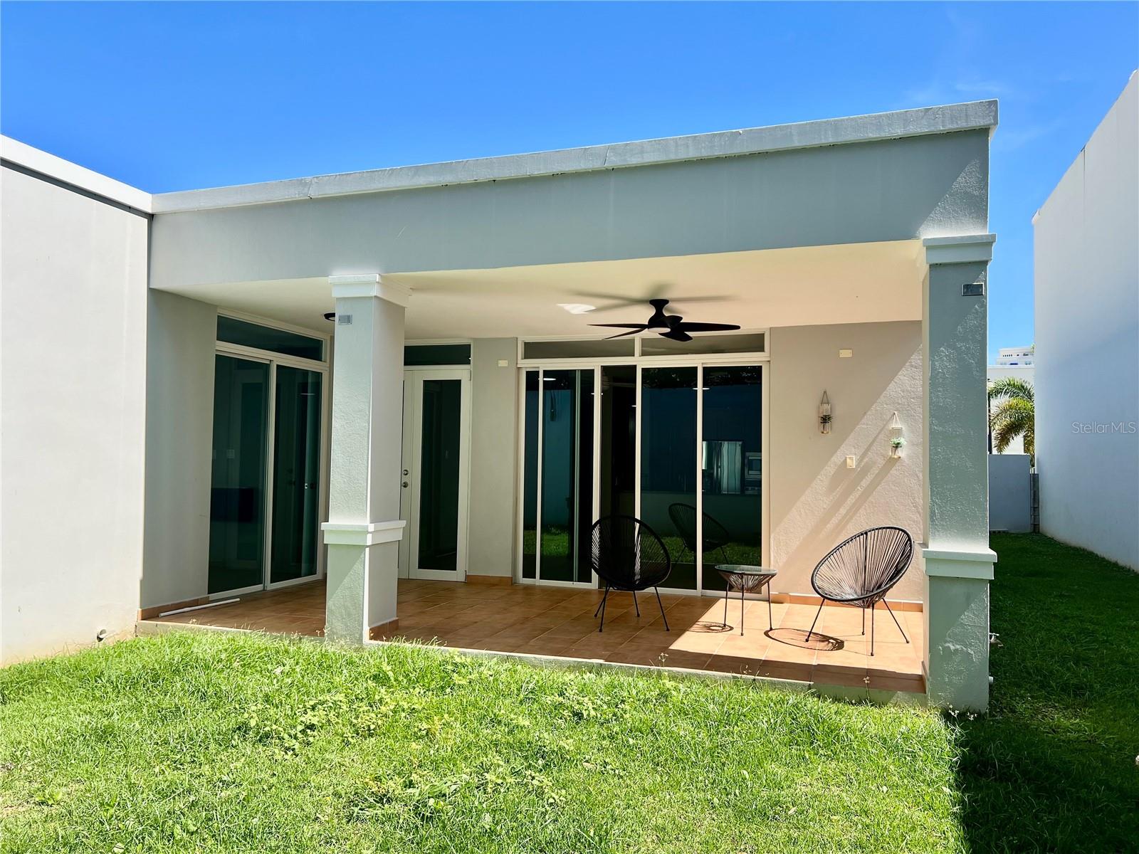 This bright and airy one-story home features an open concept design and elegant casement windows that allow natural light to flood in. It boasts four generously sized bedrooms, complete with ample closet space, and 2.5 well-appointed bathrooms. You can easily access the terrace from either the master bedroom or the family room. The kitchen comes fully equipped with all the essentials: a refrigerator, oven, microwave, and stove, along with ceiling fans throughout the house for added comfort.