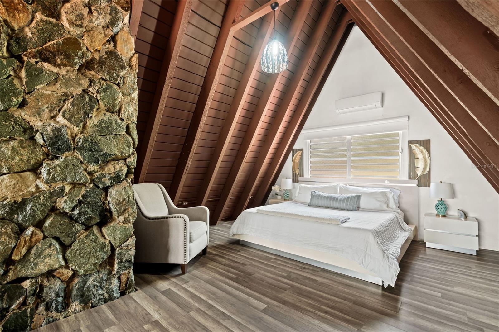 The main home is a cozy chalet-style structure with two bedrooms, a mezzanine, and two full bathrooms on the main level. While the design is rustic and simple, it has great potential to be remodeled into a relaxing getaway or special project.