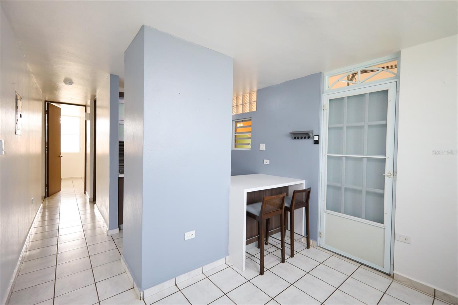 As you enter the property, you'll find a cozy living room. Adjacent to it is a dining area with a bar and access to the kitchen, which has been recently renovated with modern finishes.