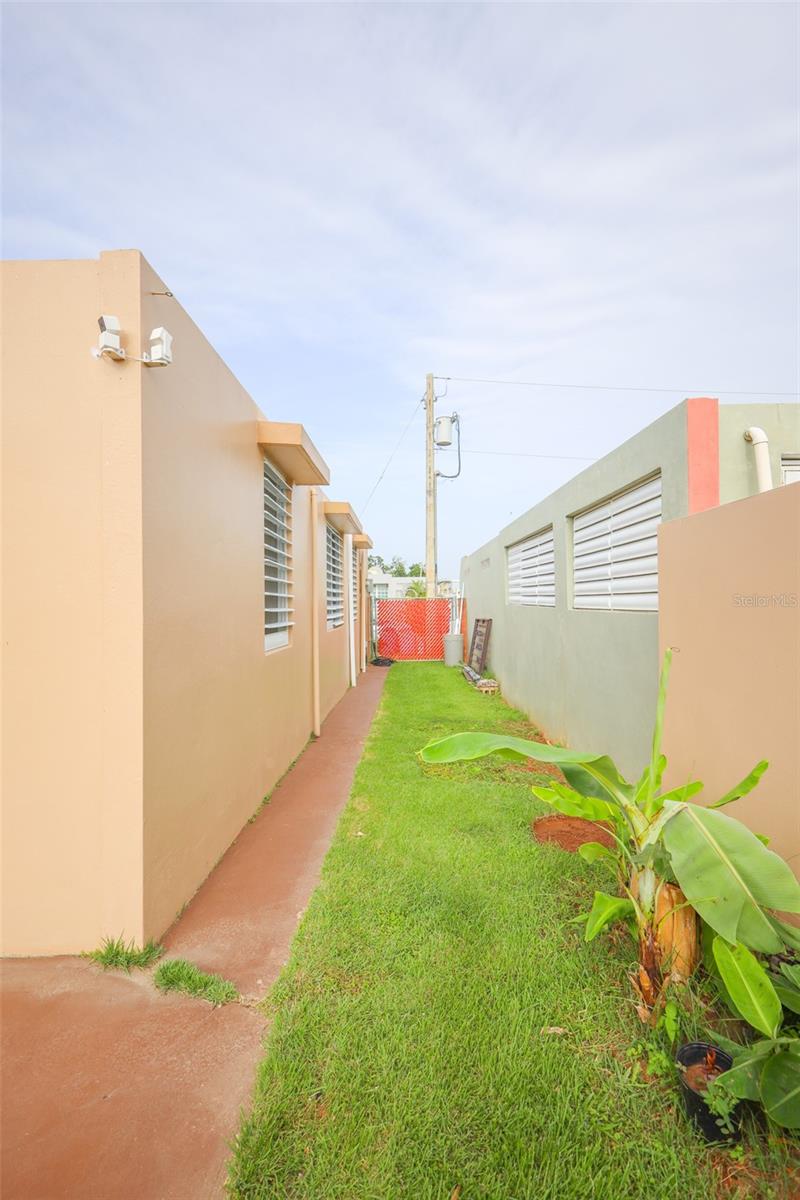 The backyard, mostly paved and low-maintenance, provides an ideal space for outdoor activities, playing, or simply enjoying the fresh air. The property also features fruit trees, adding a natural touch and providing fruits for consumption.
