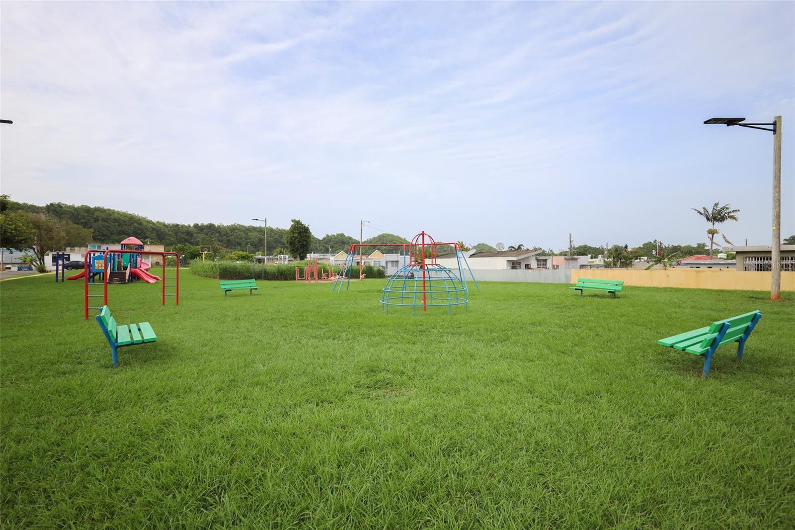 The community features a park with outdoor gym equipment, a playground, a half basketball court, and benches in green areas—perfect for enjoying quality time with family or friends in a safe and friendly environment.